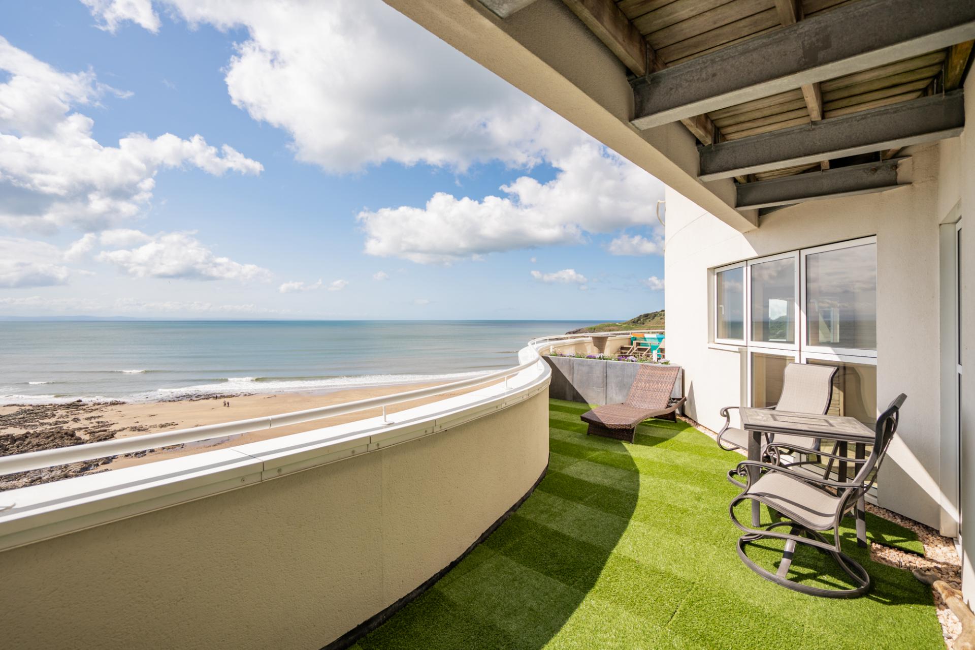 Accessed from the lounge area this tremendous balcony encompasses incredible sea views and can be enjoyed whatever the weather thanks to it being under cover. This sit out balcony is laid with Astro Turf and is a perfect spot to appreciate a glass of wine while adoring this seaside location.