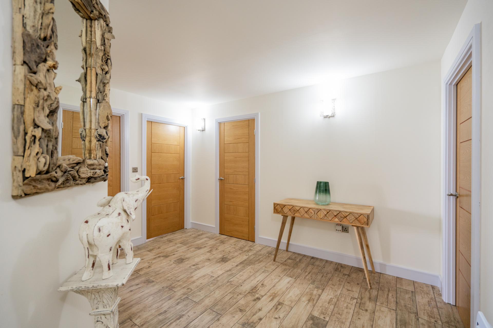 Step into the welcoming entrance/hallway and you will immediately appreciate the attention to detail. The spacious hallway is beautifully laid with stylish wood effect tiles. From here you have access to all the main living space, two bedrooms with en-suites, cloakroom, and a useful airing cupboard.
