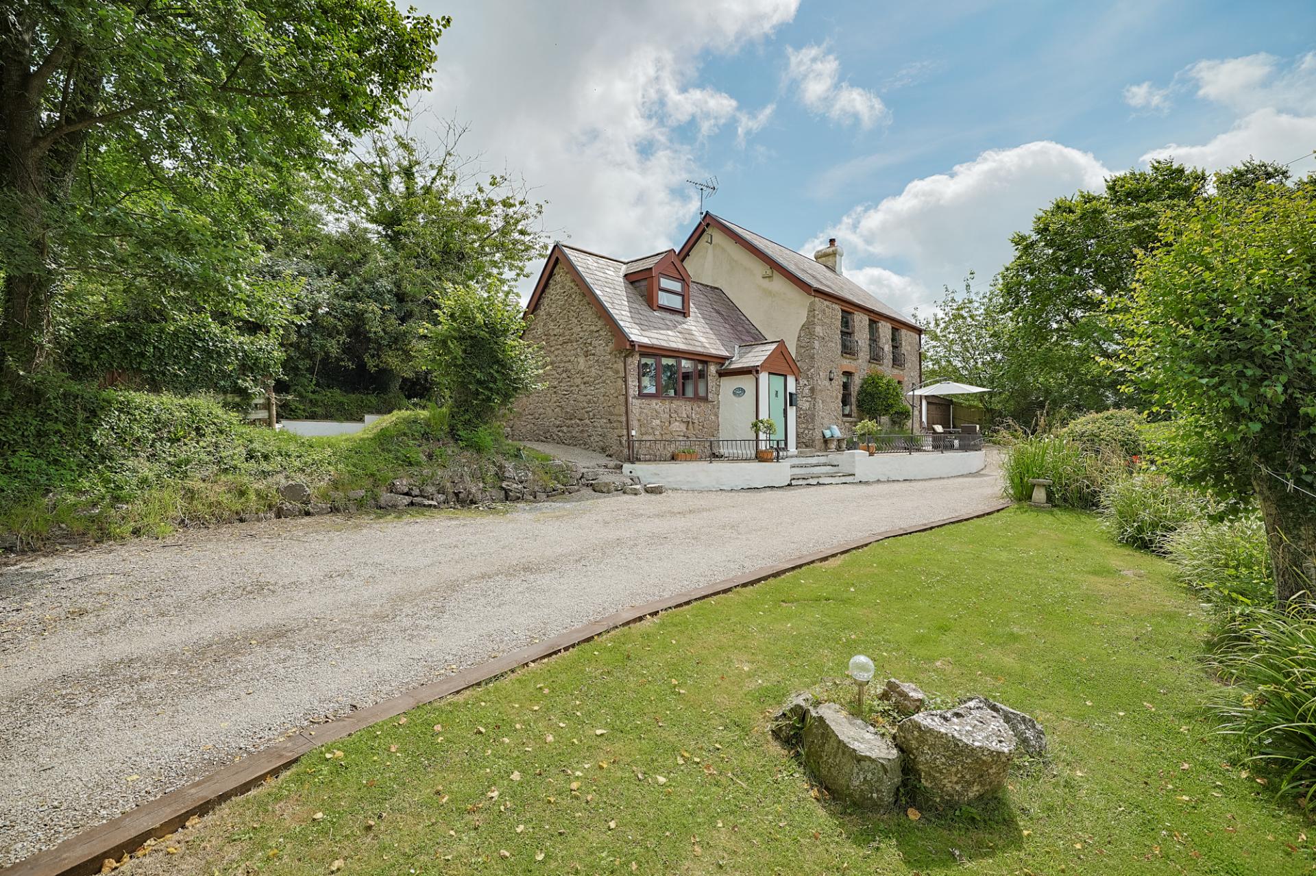 Bayview Cottage is set within a lovely, well-maintained plot. The chip-stone driveway sweeps across the front of the property, offering parking for multiple vehicles. A raised patio area to the front makes a perfect space for al fresco dining or simply enjoying the tranquil surroundings. The boundaries are defined with a mix of fencing, walls, and mature shrubs and trees. You’ll also find a level lawn, a further chip-stone area, and a paved path guiding you around the home – all beautifully presented.