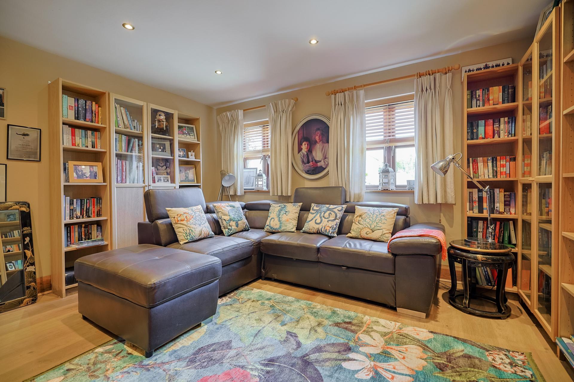 Currently styled as a peaceful book room, this flexible space would also make a delightful double bedroom. With two side windows, LVT flooring, and spotlighting, it offers both comfort and versatility.