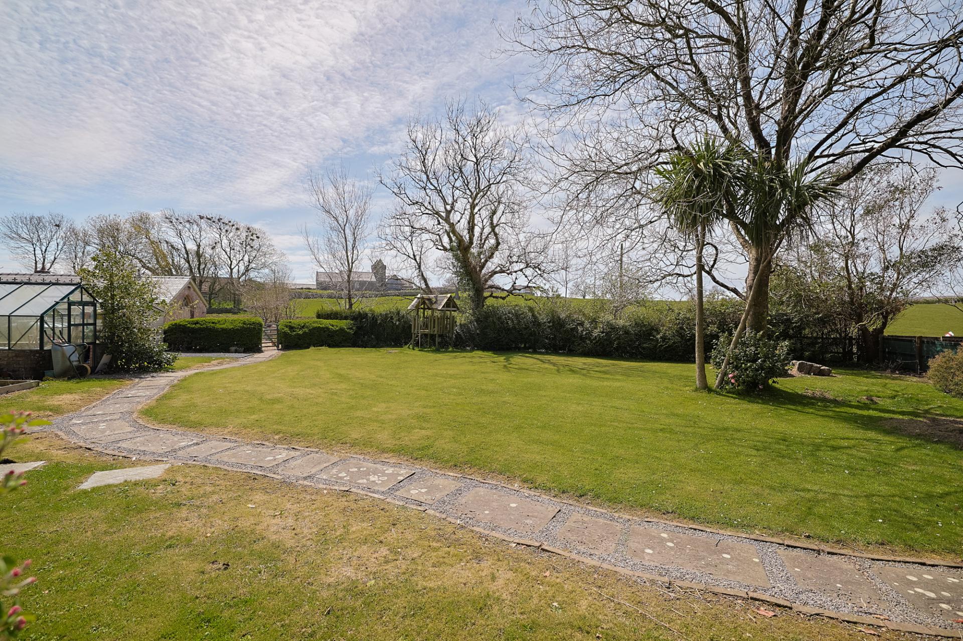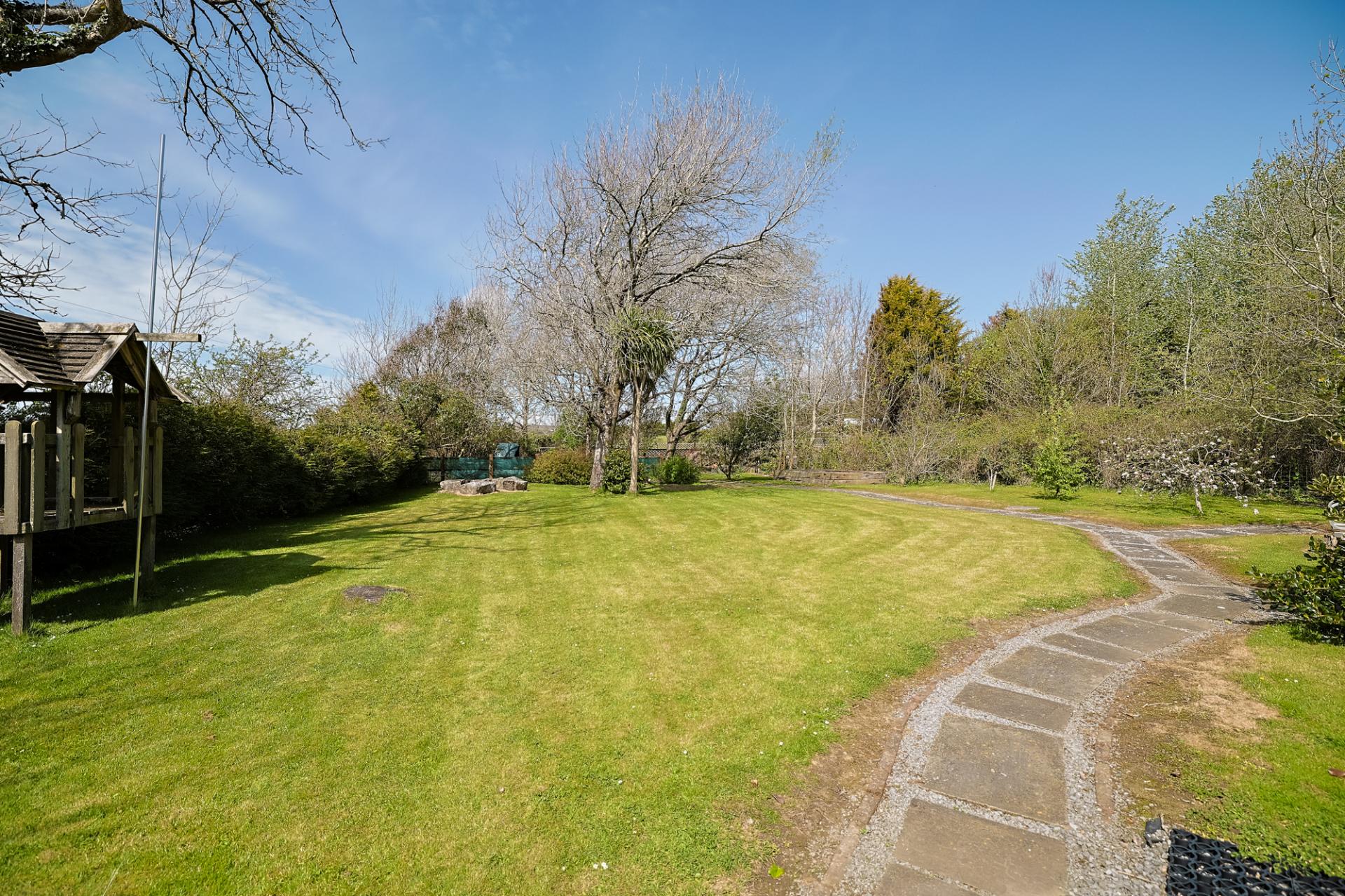 The garden is a natural haven, a perfect blend of patio, chip-stone areas, and level lawns surrounded by mature shrubs, and established trees. Ideal for entertaining or relaxing, the garden offers multiple seating areas from which to enjoy the sounds of nature and views of the church. Practical additions include a garden shed, raised flower beds, greenhouse, and a separate hardstanding area ideal for parking a car, campervan, or boat, accessed via a rear entrance. Pathways encircle the entire property, allowing full enjoyment of this serene and private outdoor space.