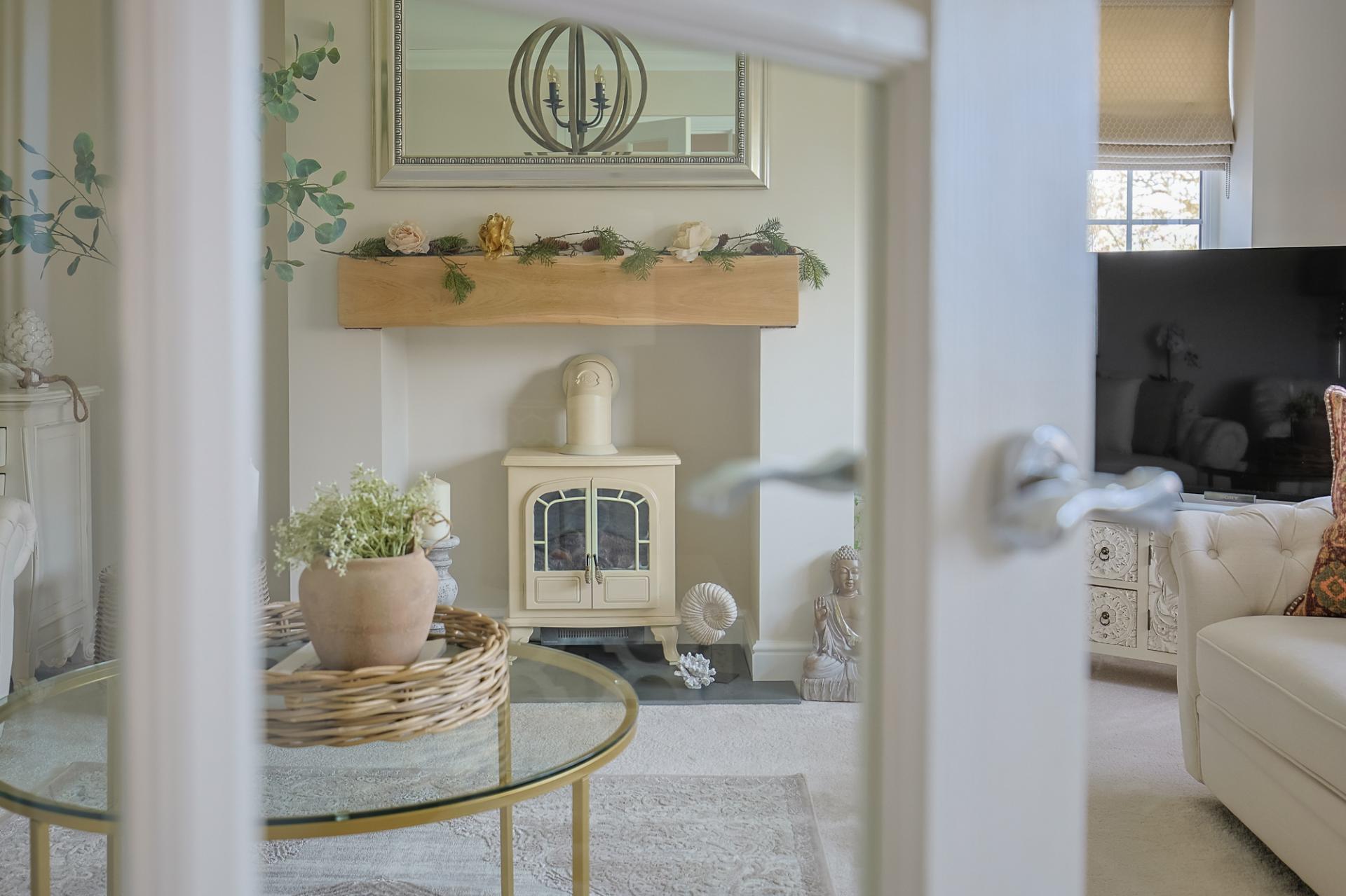 Situated to the front of the home, the lounge is bathed in natural light, streaming through the dual-aspect windows, with the front-facing window offering breath-taking views of the rolling countryside. Enjoy the warmth and charm of a log fire with a slate hearth and an oak mantel. This relaxing space also features carpeted flooring and coving.