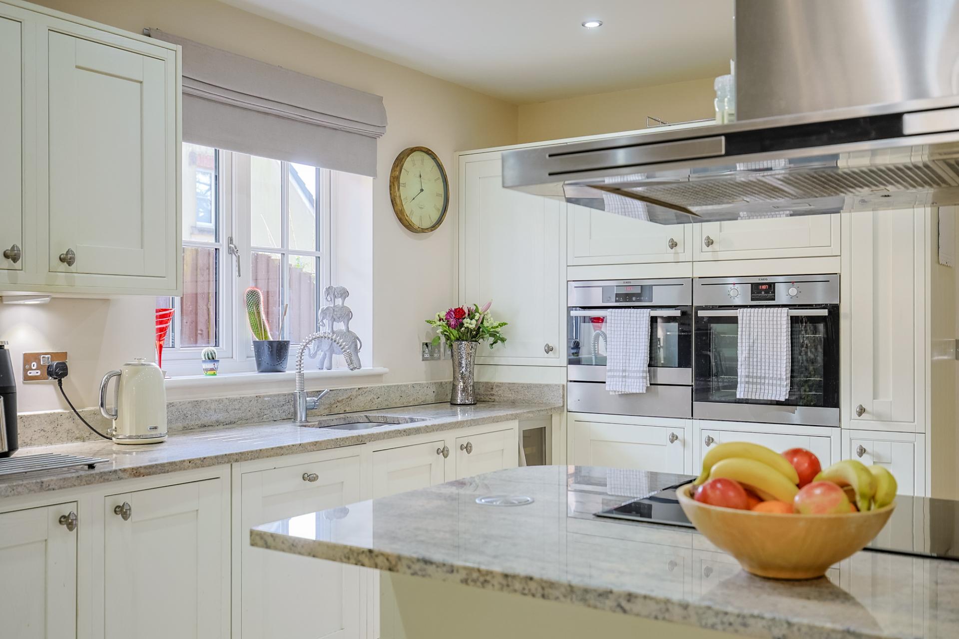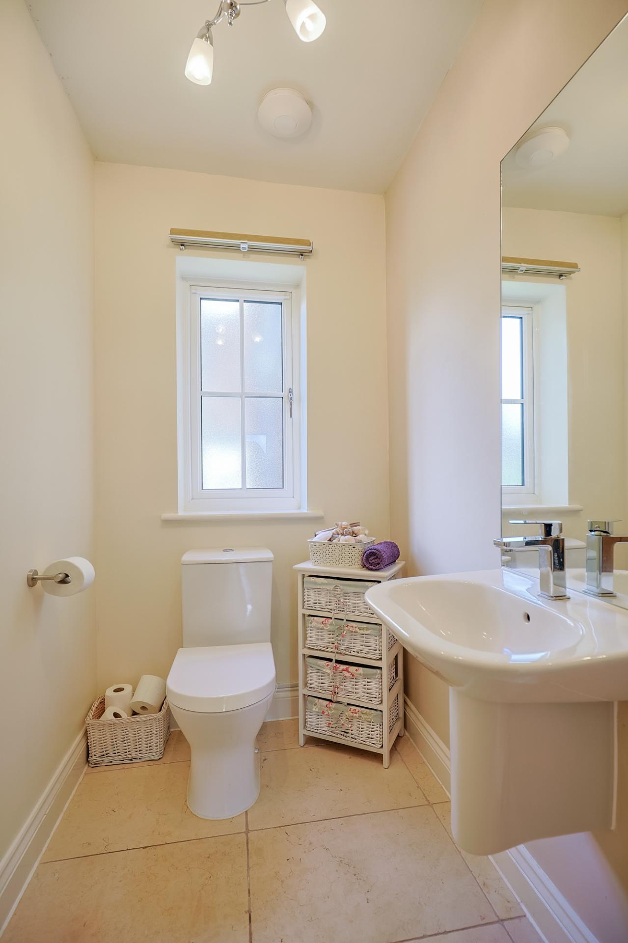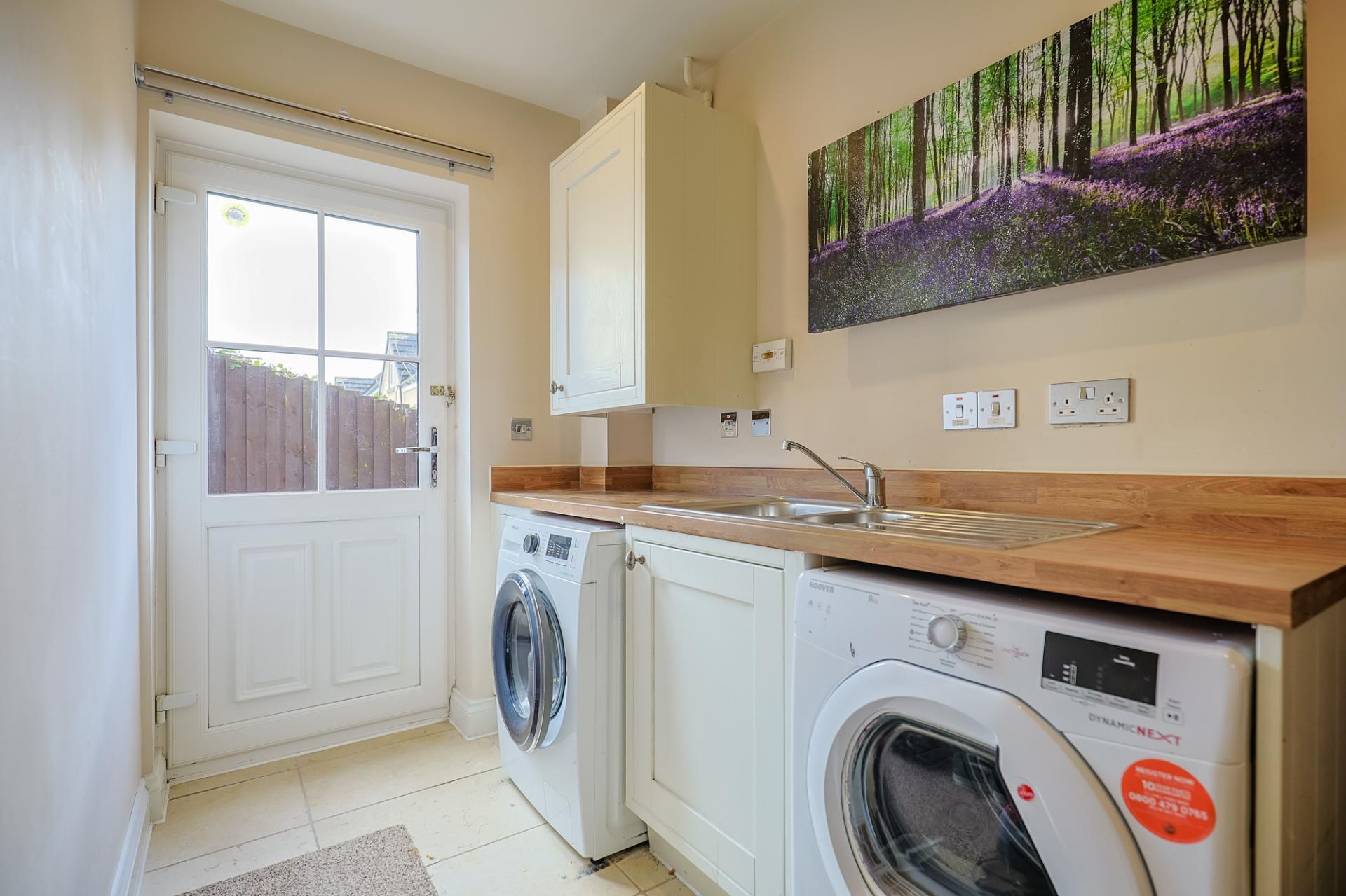 A practical addition to the home, the utility room offers extra storage units, a double stainless-steel sink with drainage, space for two under-counter appliances, tiled flooring, and an extractor fan. From here, you have access to a useful ground-floor WC and a side door leading to the front and rear of the home.