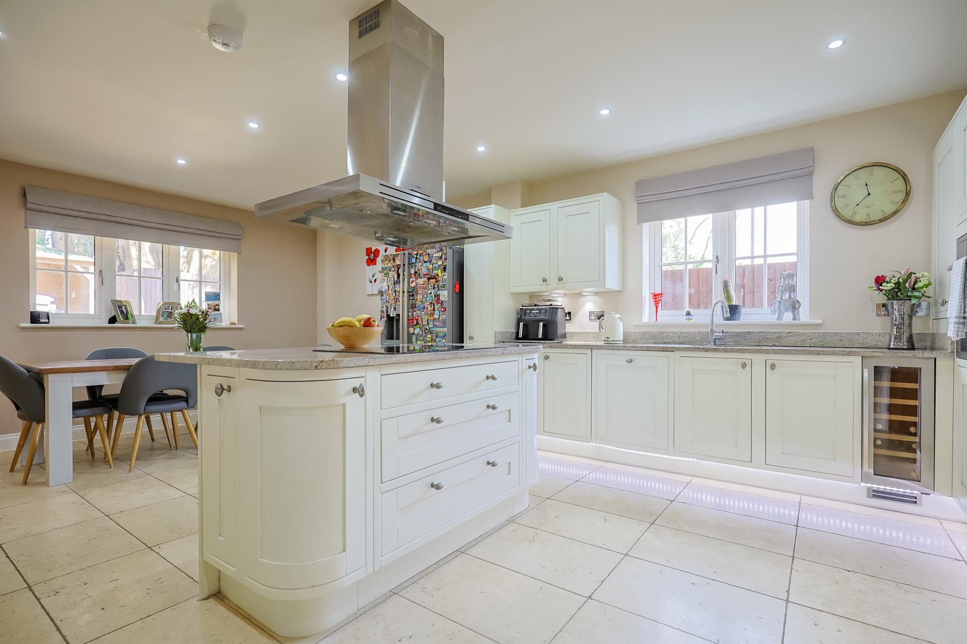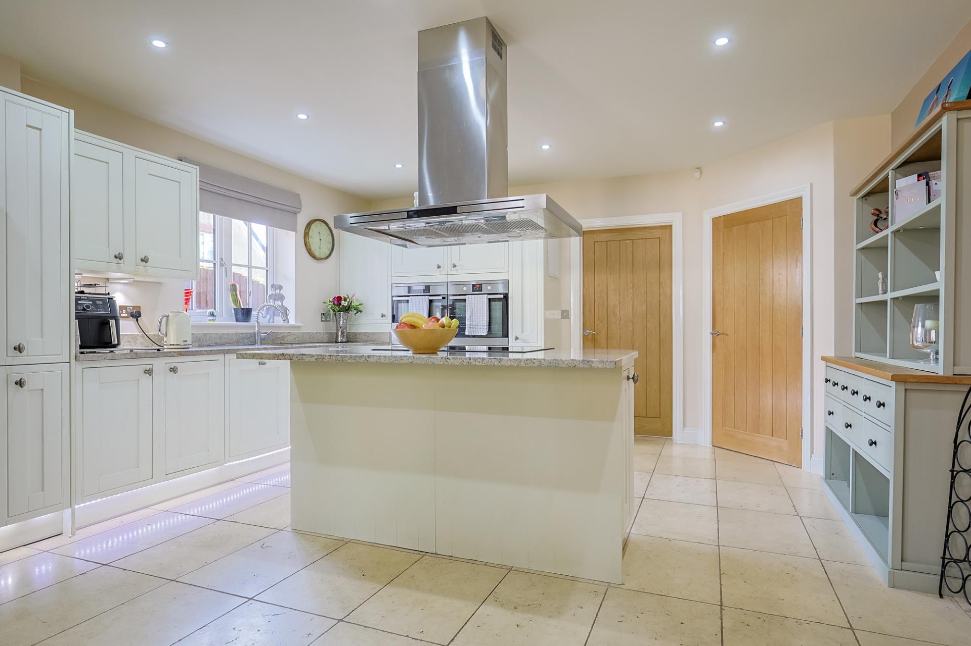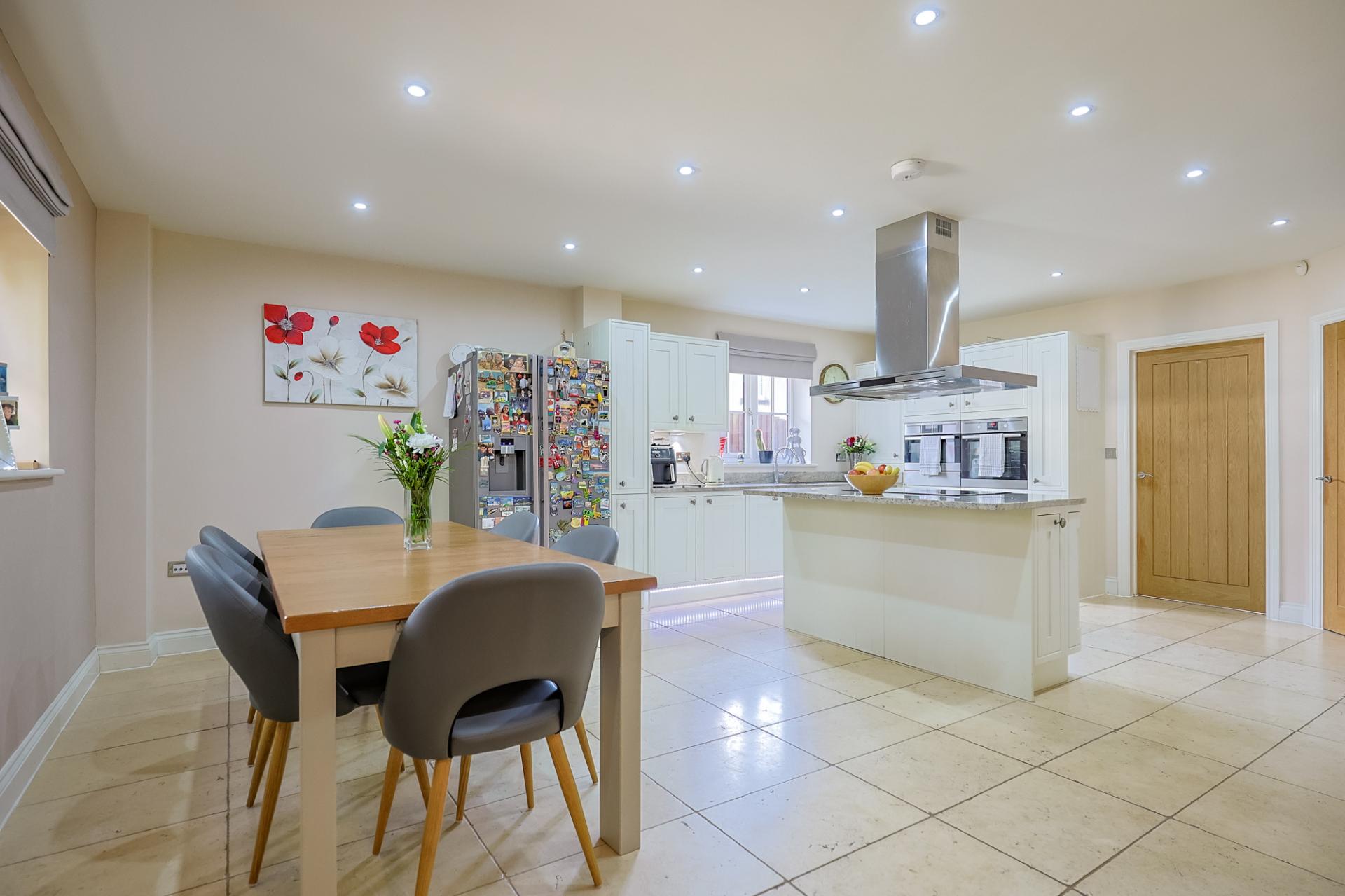 A practical addition to the home, the utility room offers extra storage units, a double stainless-steel sink with drainage, space for two under-counter appliances, tiled flooring, and an extractor fan. From here, you have access to a useful ground-floor WC and a side door leading to the front and rear of the home.