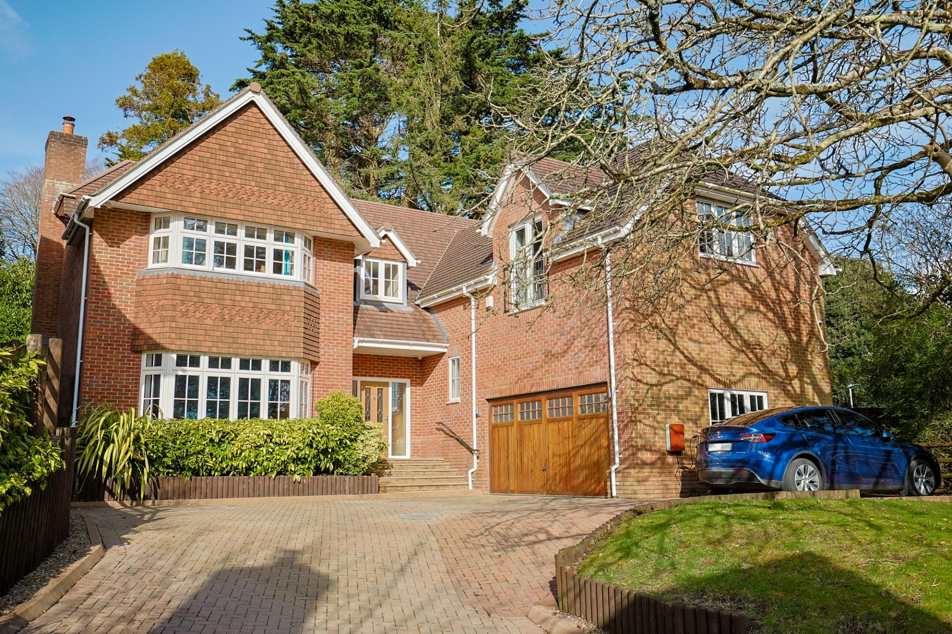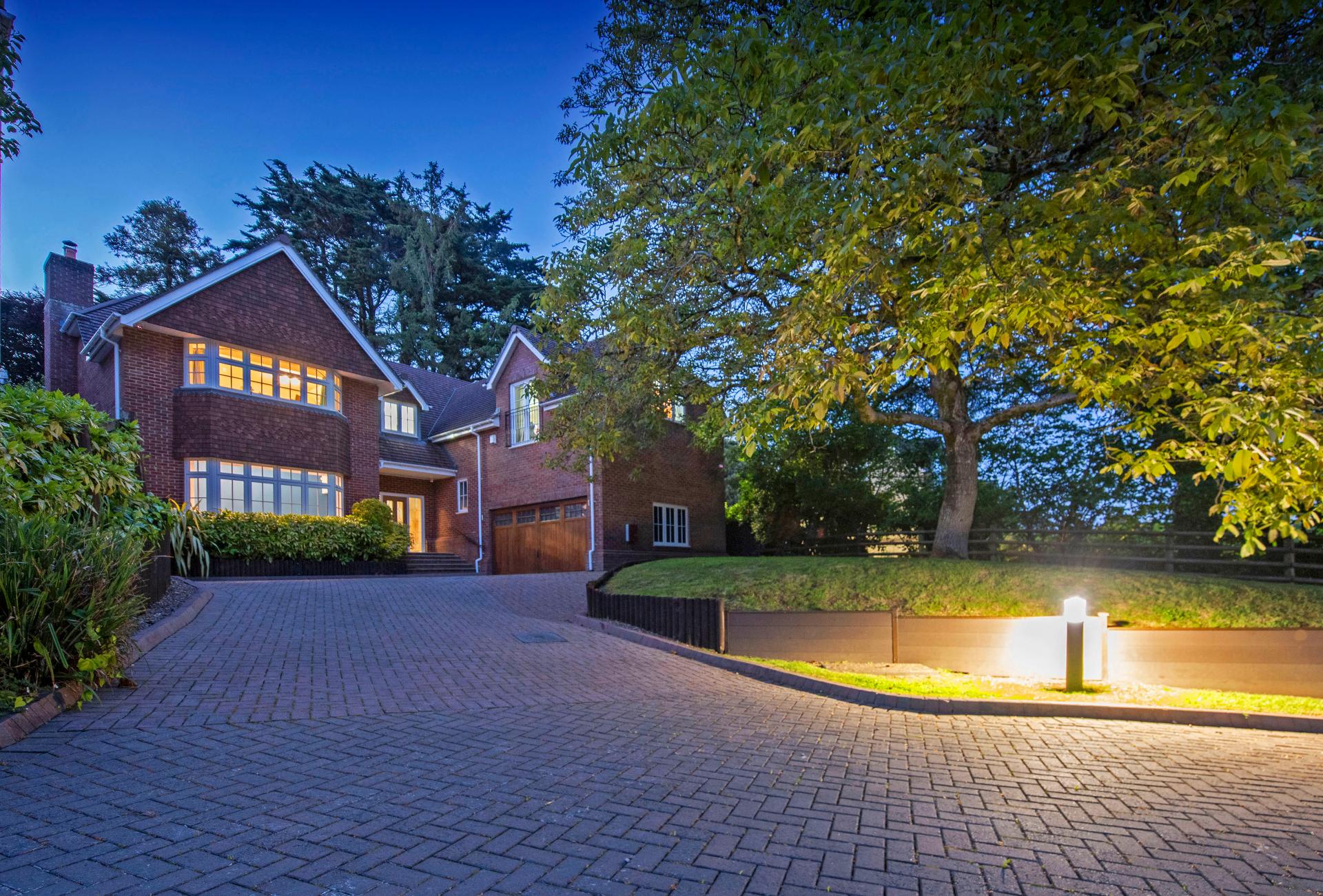 To the front, a generous brick-paved driveway provides ample parking and includes an Anderson A2 EV charger. Raised flower beds add an attractive finishing touch to this well-kept exterior.