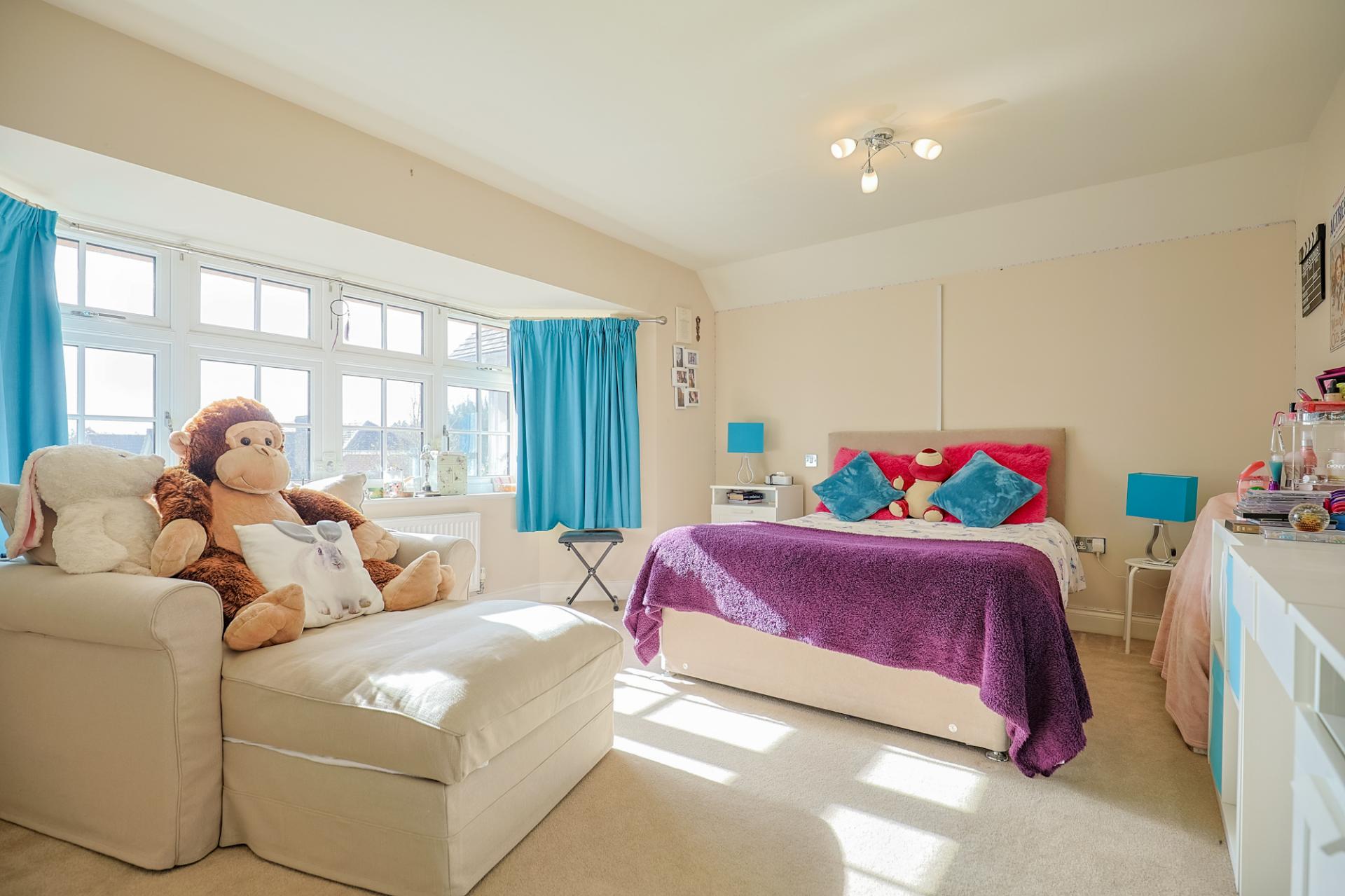 Situated to the front of the home, bedroom three is a generous double bedroom featuring a large bay window that invites plenty of natural light. This room offers ample space for a dressing or seating area, making it a highly adaptable space.