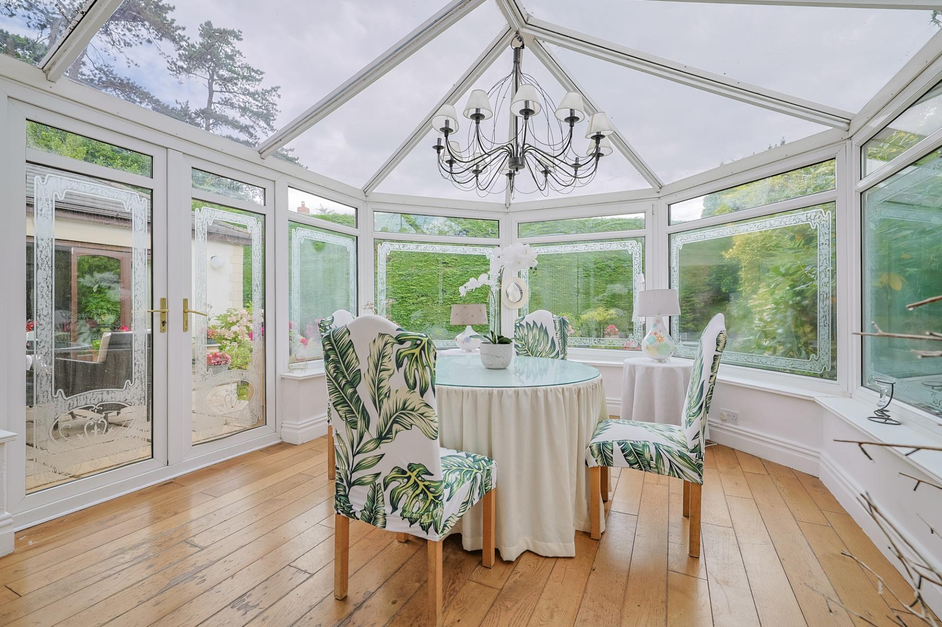 The conservatory is a bright and versatile space, perfect for a morning coffee or relaxed family time. Wooden flooring continues through from the sitting room, and the multiple surrounding windows flood the room with natural light while offering views across the rear garden. Double patio doors provide easy access to the garden, enhancing the indoor-outdoor living experience.
