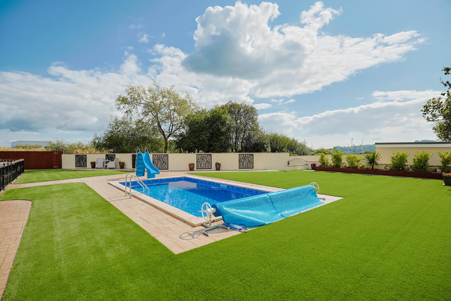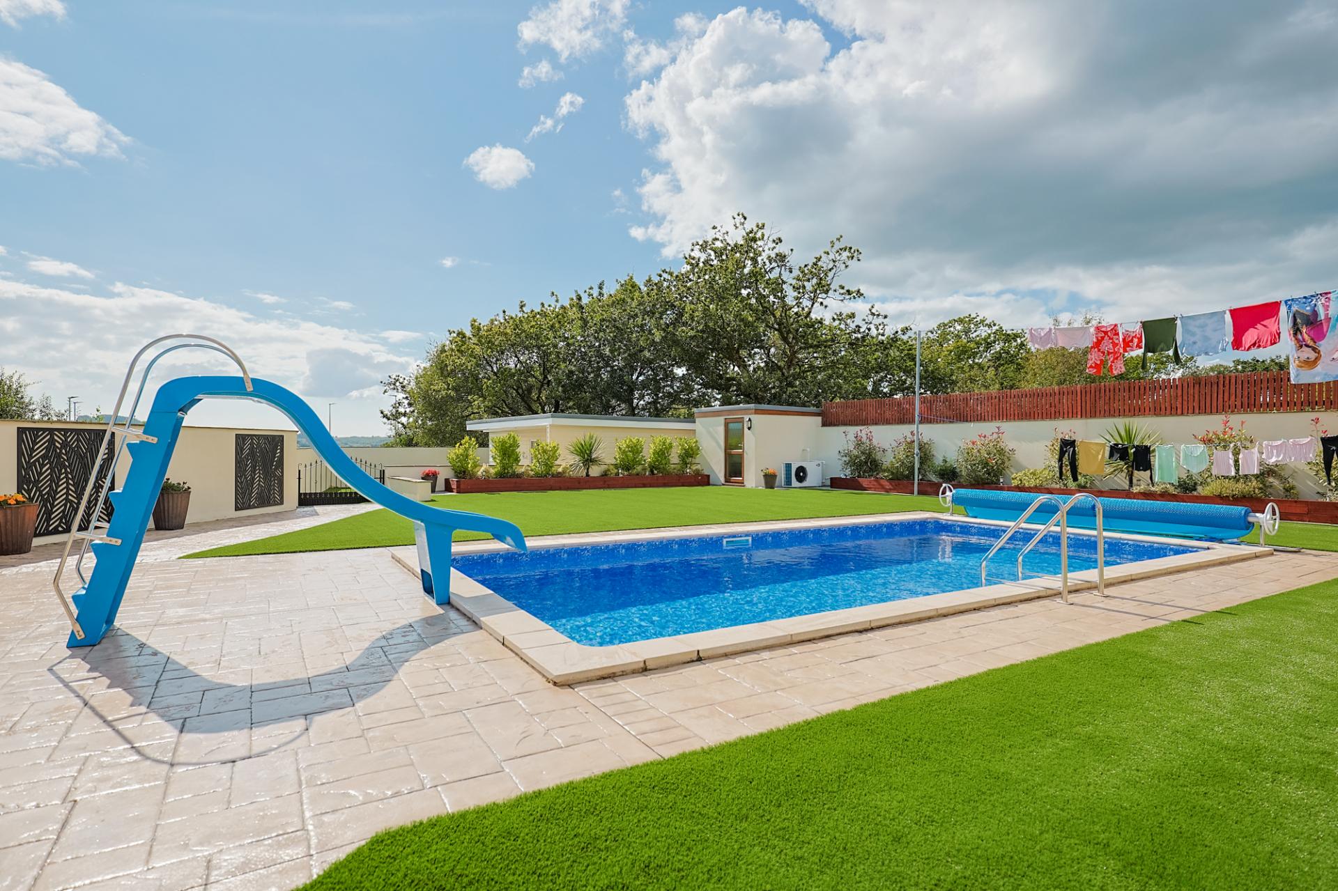 - Family size heated swimming pool