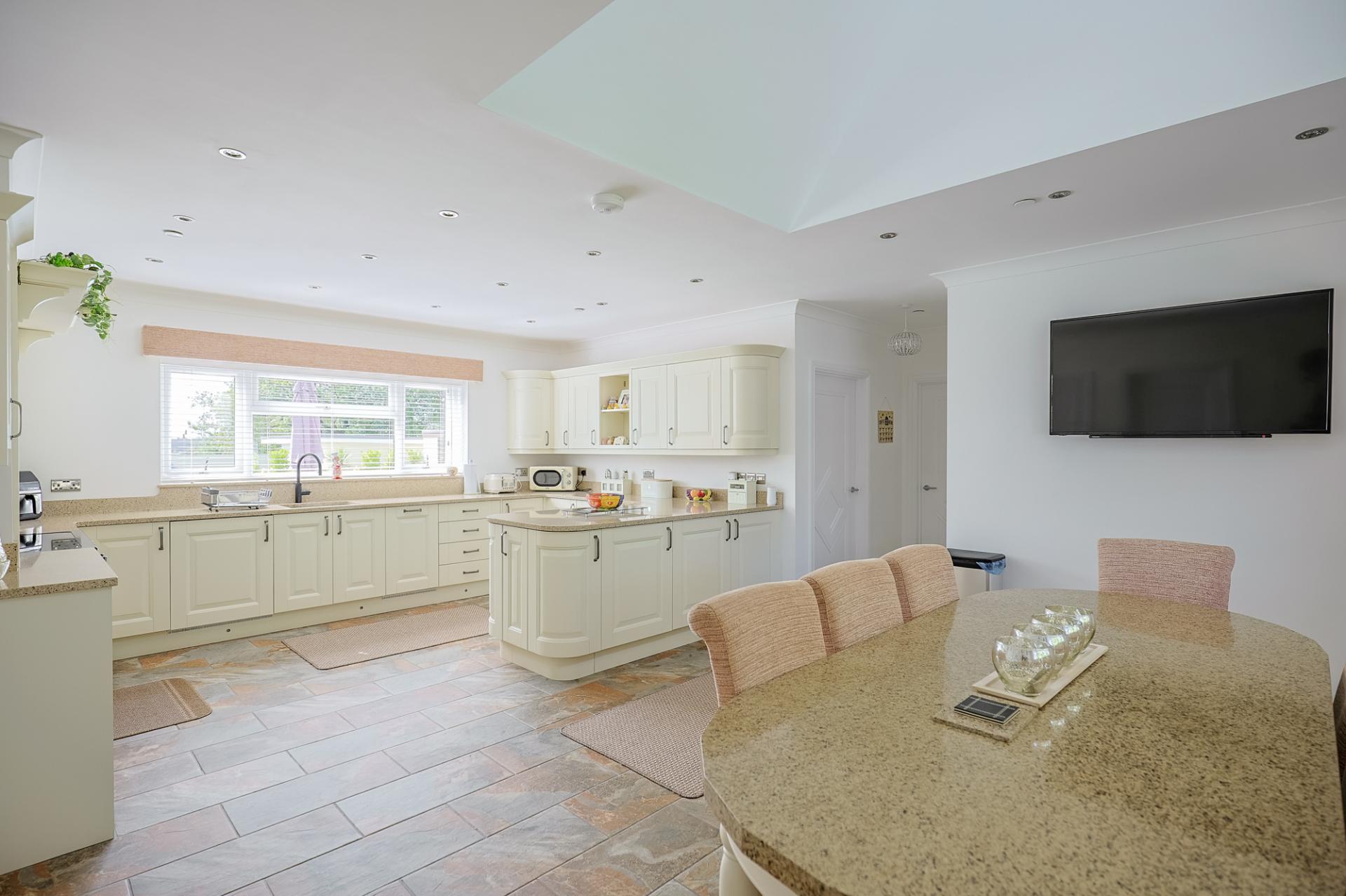 You are welcomed into a tiled porch that provides access to the open-plan kitchen/diner and the fifth bedroom.