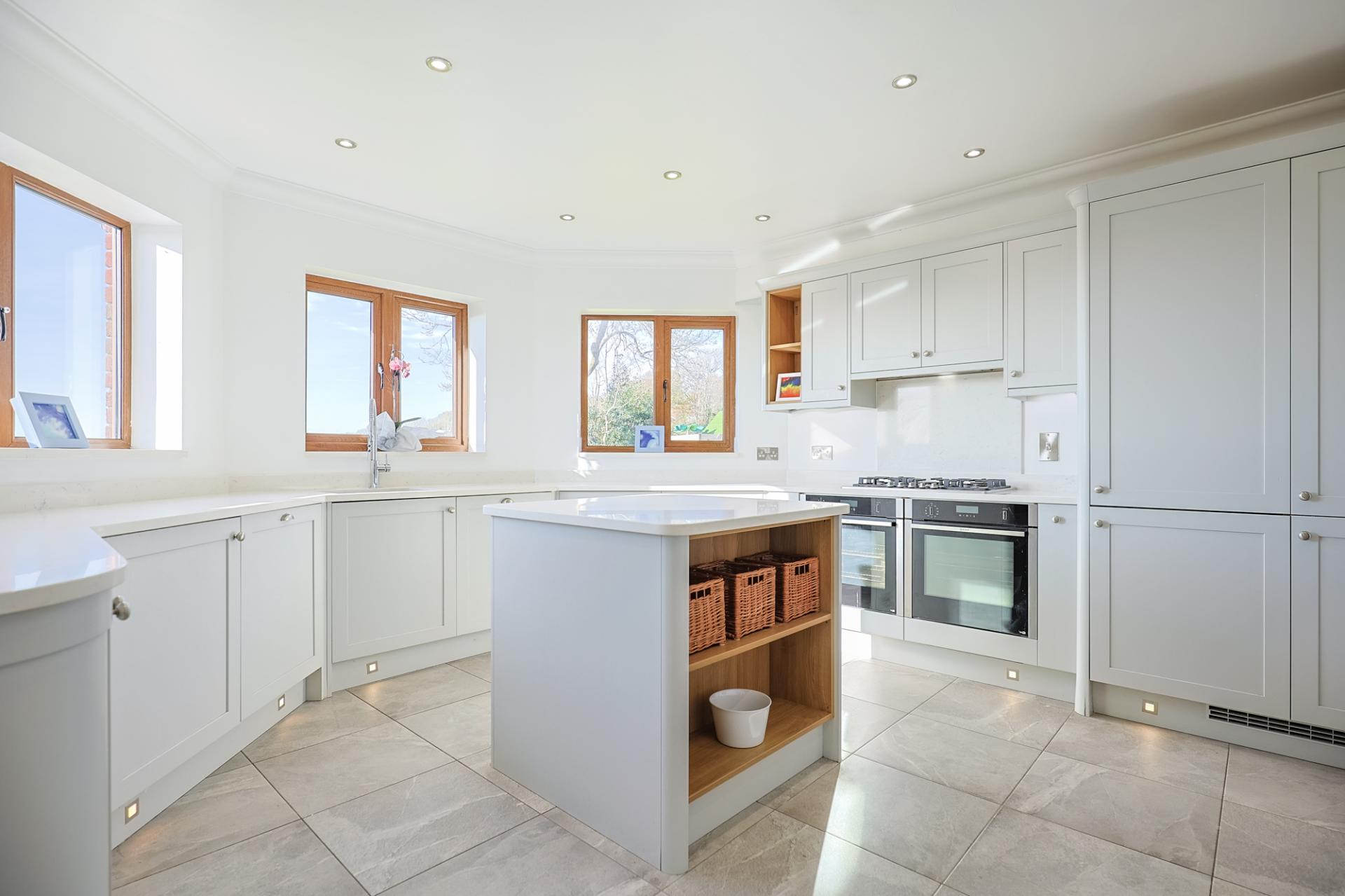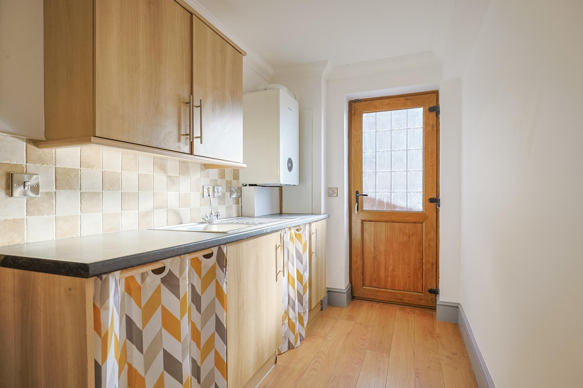 This practical space features extra wall and base units, a single stainless-steel sink, and space for two under-counter appliances. Here you also have laminate flooring, coving, access to the integral double garage and a side door to the rear garden.