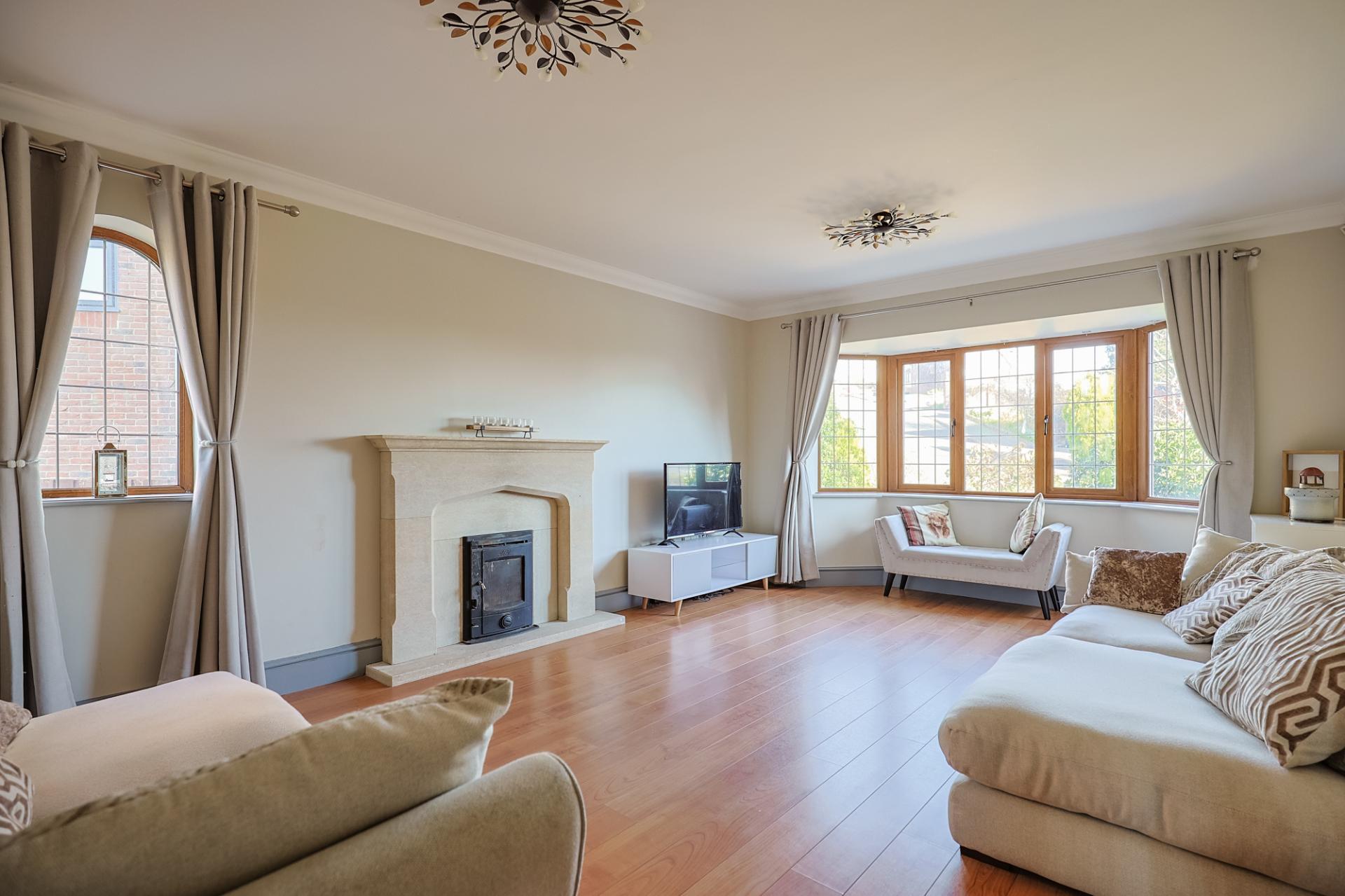 This bright and airy room features a large bay window to the front and a side feature window, allowing natural light to flood the space. Offering laminate flooring and a standout AGA wood burner, set within a stone surround and hearth, provides a warm and inviting focal point.