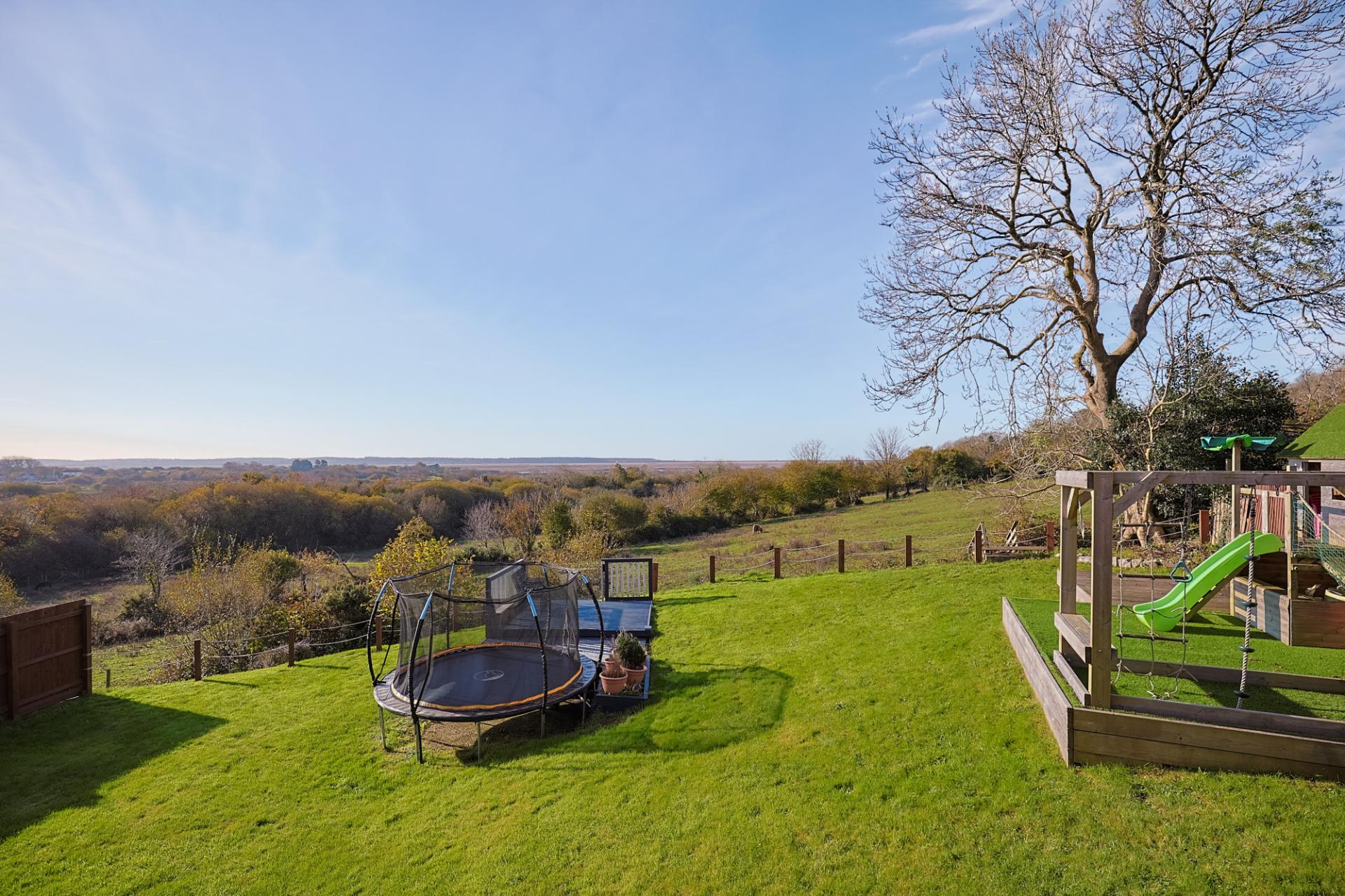 The outdoor spaces at 4 Castle Court are equally impressive, offering a perfect balance of relaxation and entertainment. The rear garden provides breath-taking views of the countryside and estuary, complemented by a mix of lawn, patio, and decking areas. A decking, and a multi-purpose entertainment area create an ideal setting for socialising or unwinding. The front of the property has been beautifully landscaped with paving, decorative gravel, and oak bollards, providing a polished first impression.