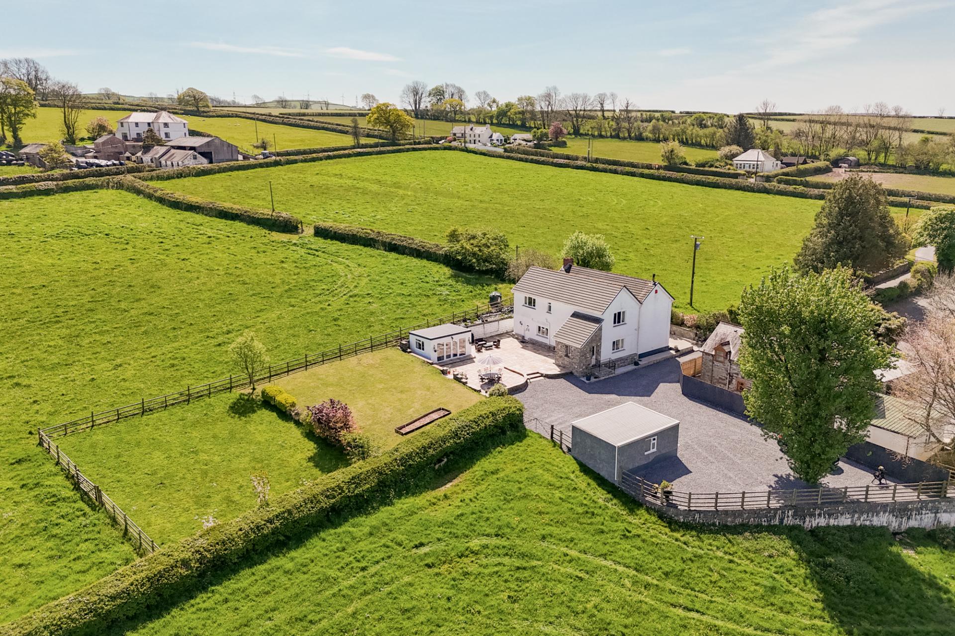 Welcome to Castle Farm, a truly idyllic rural equestrian home nestled in the heart of the rolling Carmarthenshire countryside. This charming five-bedroom detached farmhouse—formerly a traditional Welsh longhouse—is set within approximately 11 acres of beautiful gardens and agricultural land, thoughtfully divided into three substantial paddocks and lined with stock fencing and natural shrubs. The peaceful surroundings are nothing short of spectacular, offering uninterrupted countryside views and the soothing sound of nature in every direction. The home also boasts a detached single garage and a delightful garden room, perfect for relaxing and embracing the stunning landscape. With character in abundance, the property benefits from solar panels, ground floor underfloor heating, and charming latch doors throughout, offering a perfect blend of traditional and modern living.