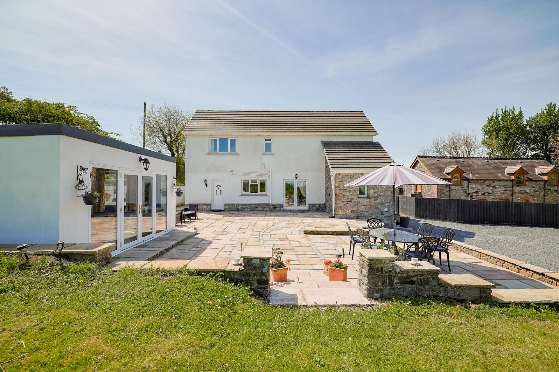 After a scenic journey along the charming Welsh roads through Kidwelly, you arrive at Castle Farm via a six-bar iron gate that leads you down a long tarmac driveway. Lined with mature shrubs and trees, the driveway opens out into a substantial chip-stone parking area suitable for multiple vehicles. From the moment you arrive, the peacefulness and breath-taking views capture your attention. Ascend the three steps and prepare to step into a home that offers the very best of rural living.