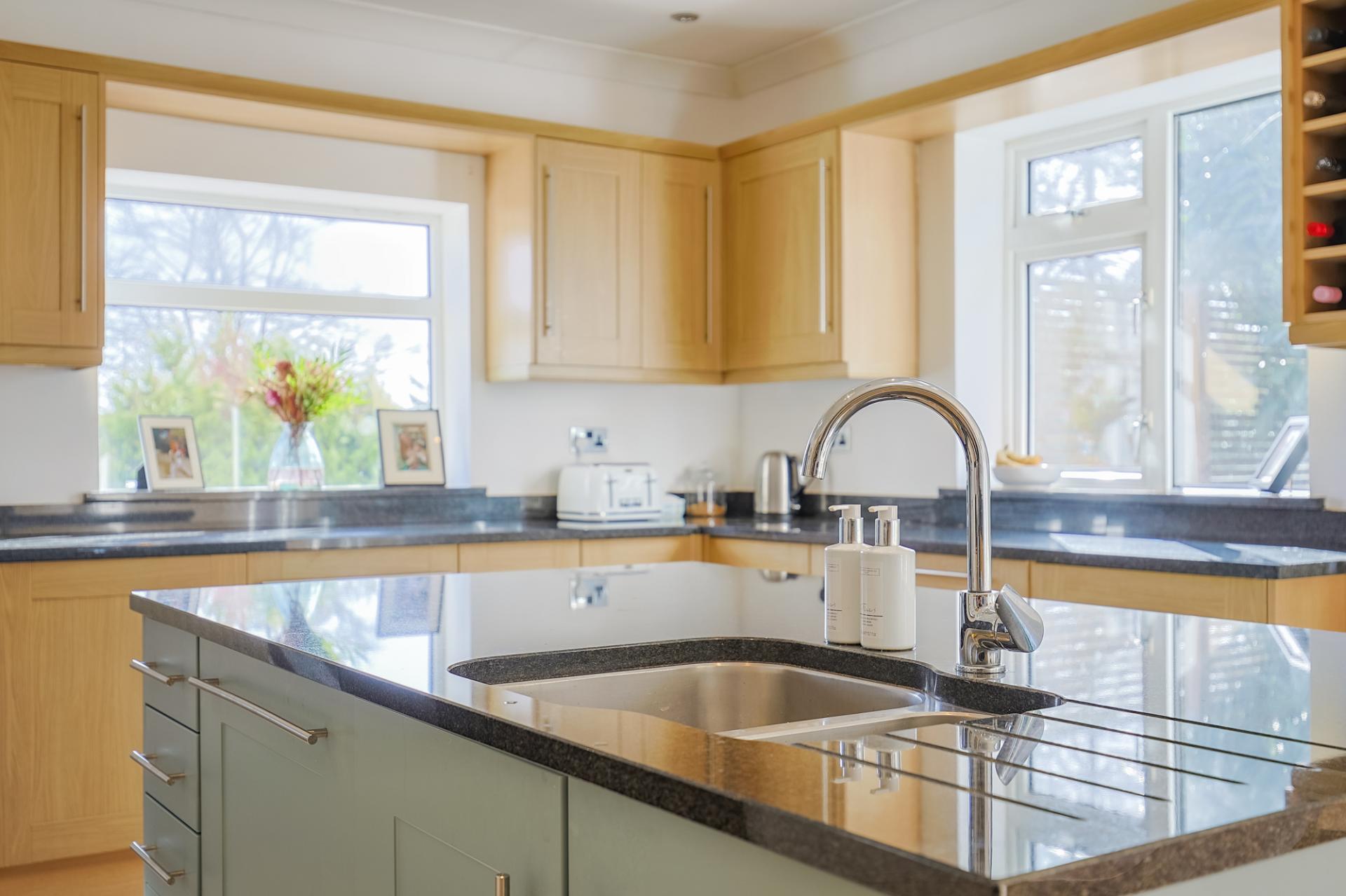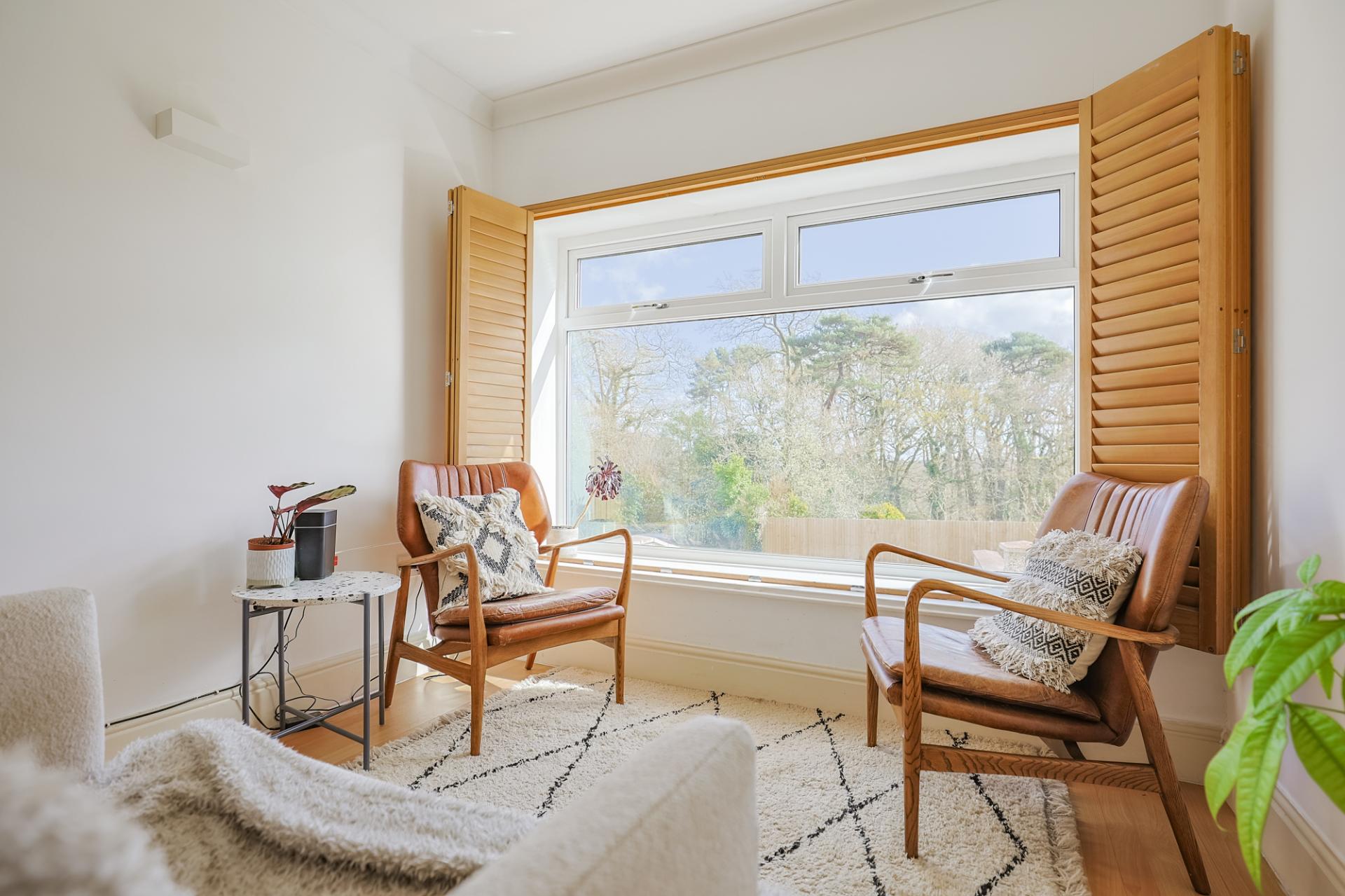 The sitting room, situated at the front of the home, benefits from a large window with shutters that allow an abundance of natural light while framing a picturesque outlook of mature trees and Clyne Gardens. This versatile space is ideal as a home office, playroom, or additional reception room, catering to your family's needs.