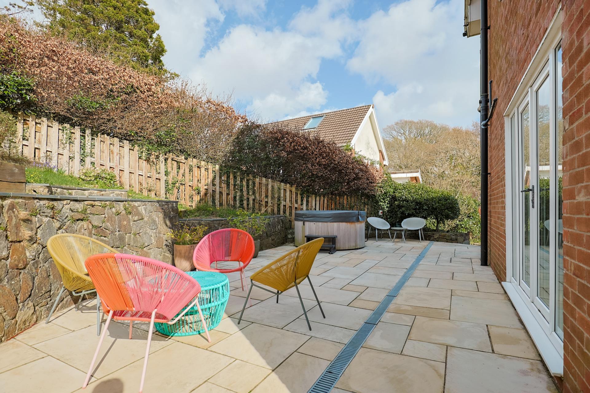As you meander through the picturesque village of Mayals, you will arrive at this impressive family home, which sits proudly in an elevated position overlooking the stunning Clyne Gardens. A generous resin driveway provides ample parking and leads to a single garage. Resin steps guide you to the front door, inviting you into this spacious and well-appointed home.