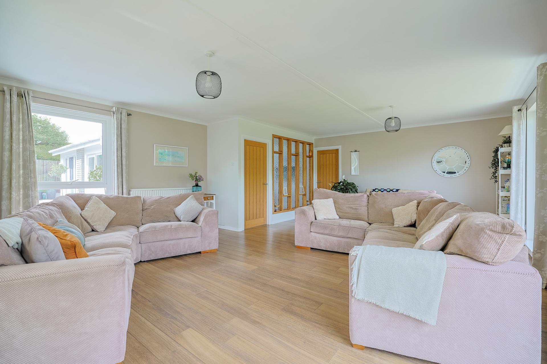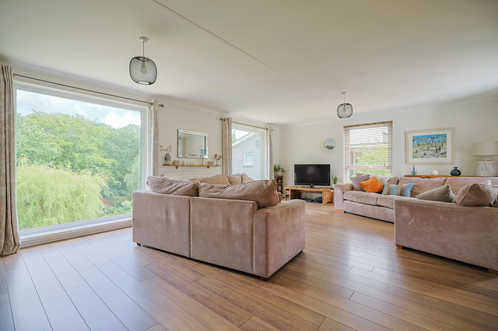 The lounge is a superbly bright and airy space, thanks to its triple aspect, with huge windows showcasing views over the beautifully manicured grounds. This generous room is finished with coving, high-quality Quickstep laminate flooring, and features a frosted window that overlooks the stairway. From here, you are led into the formal dining room.