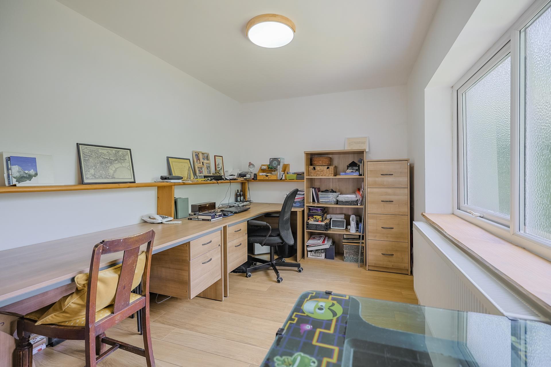 Just off the family area is a desirable study—a versatile room currently utilised as a home office, complete with a large frosted rear window providing a calm and private workspace.