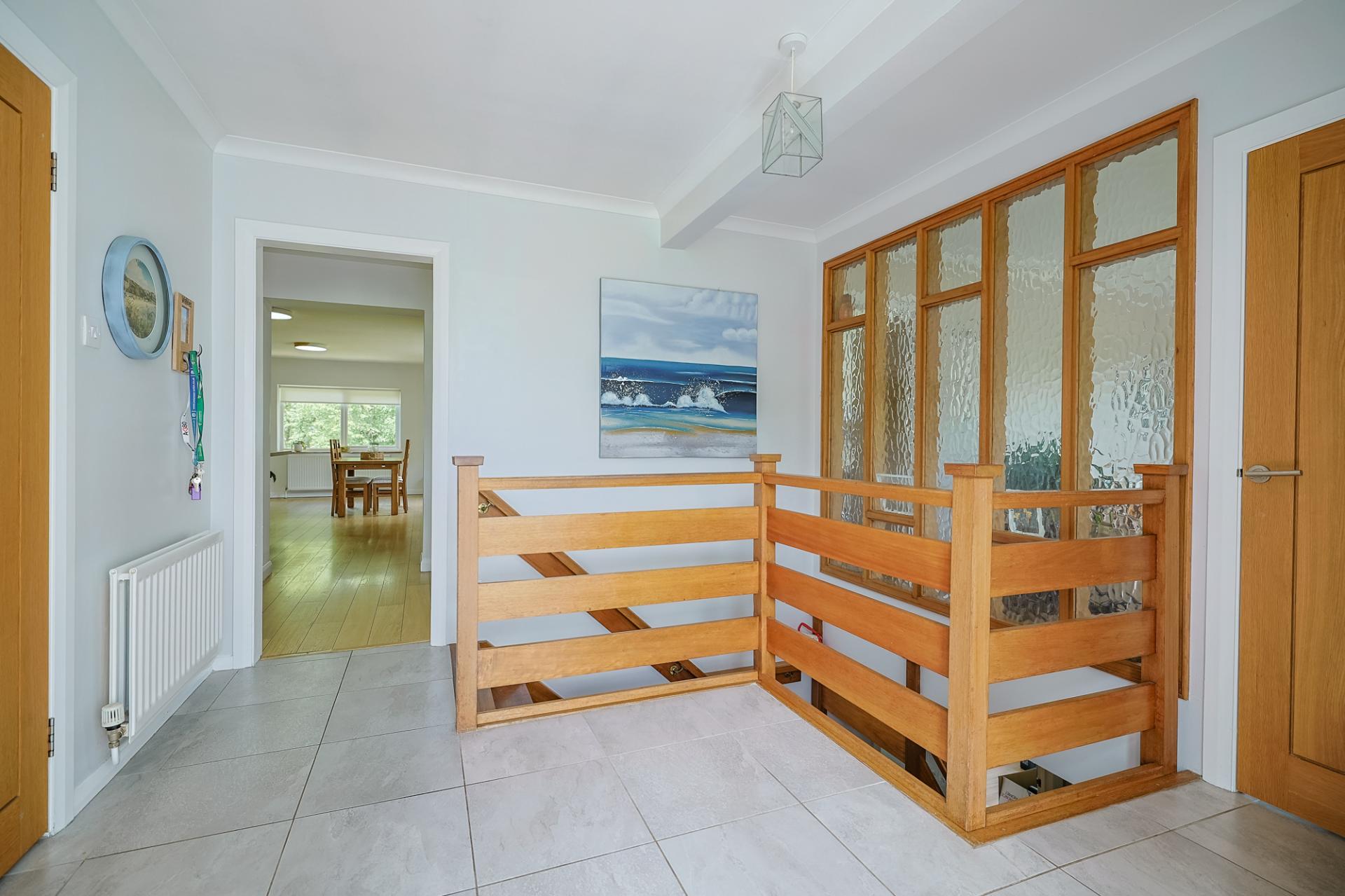 Step into a bright and welcoming entrance hallway with attractive tiled flooring underfoot. This central hub of the home gives direct access to the kitchen/breakfast/family room, lounge, a versatile additional bedroom or sitting room, a WC, and a stairway to the lower ground floor.