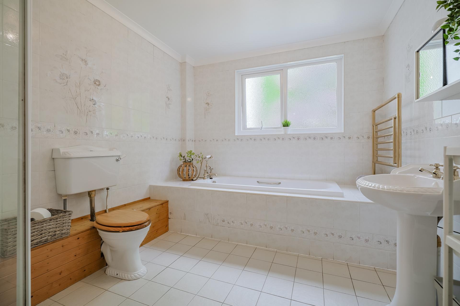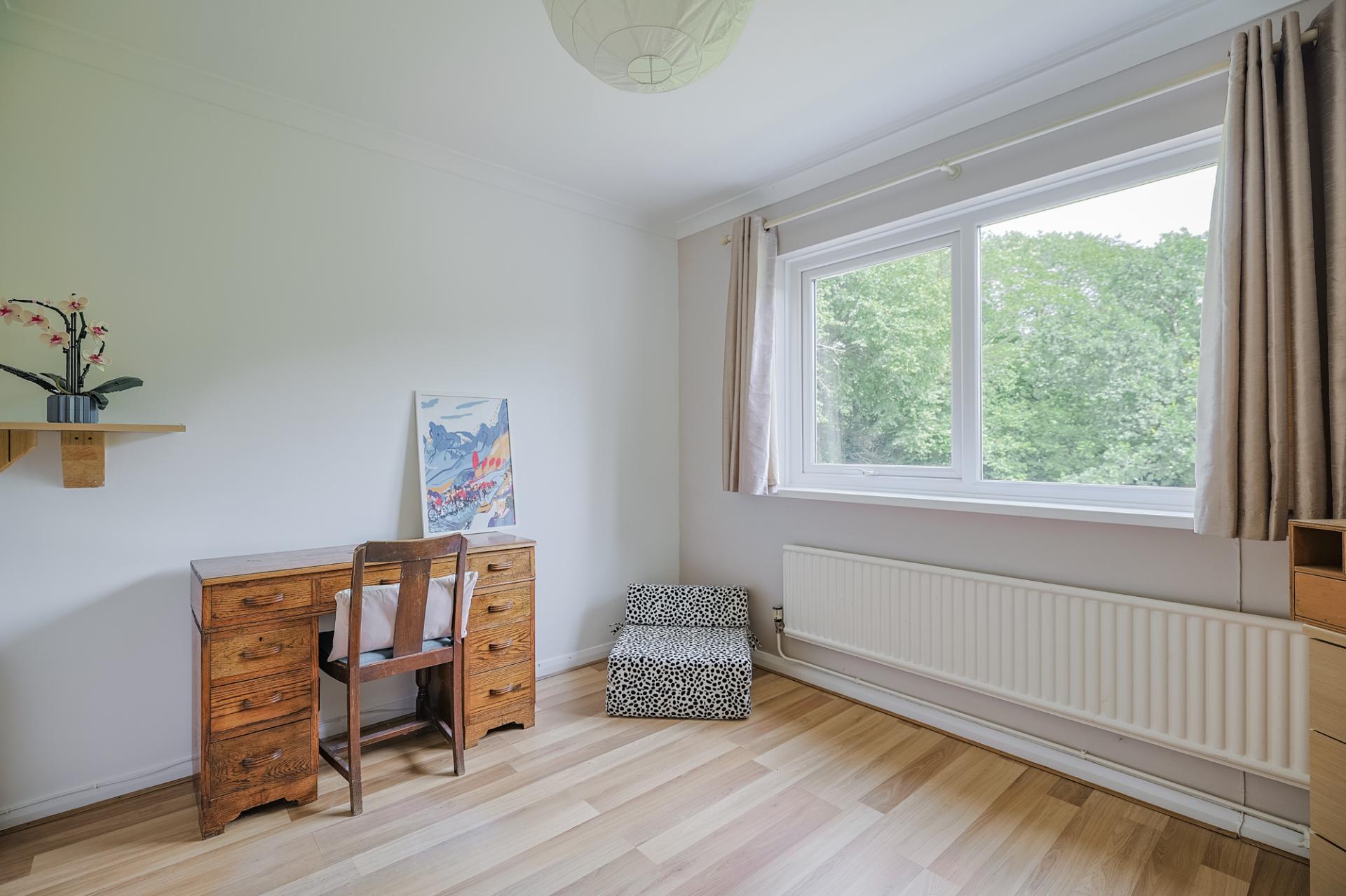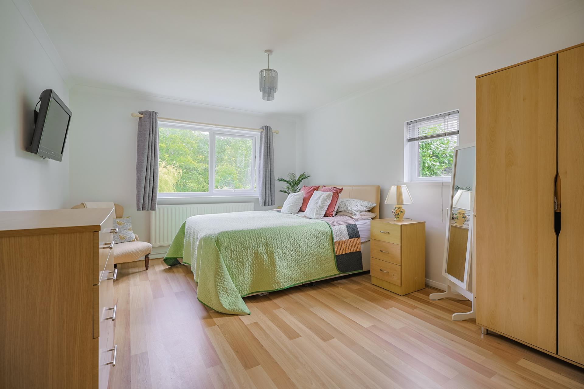 Bedroom three is a spacious double room with dual aspect windows that flood the space with natural light and offer lovely garden views. Here you have Laminate flooring, coving, and there’s ample space for wardrobes and additional furniture.