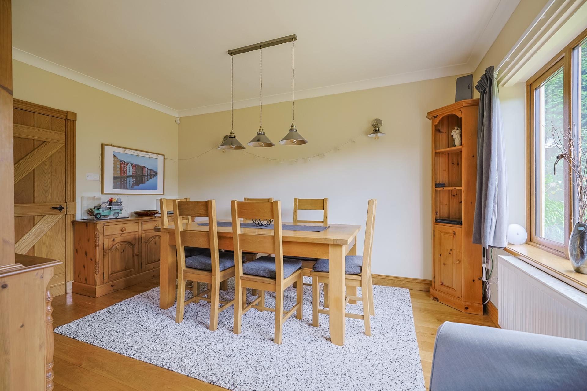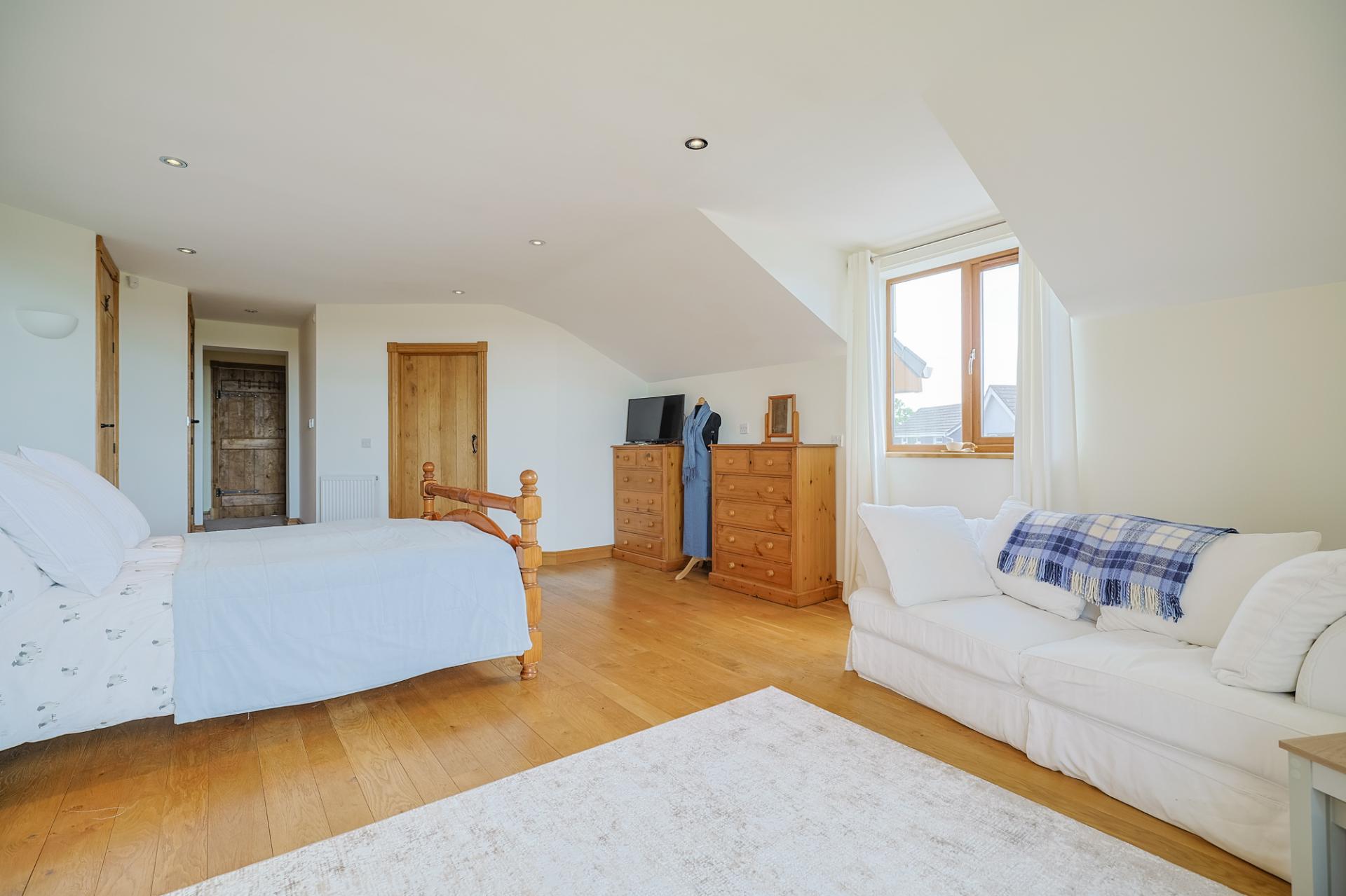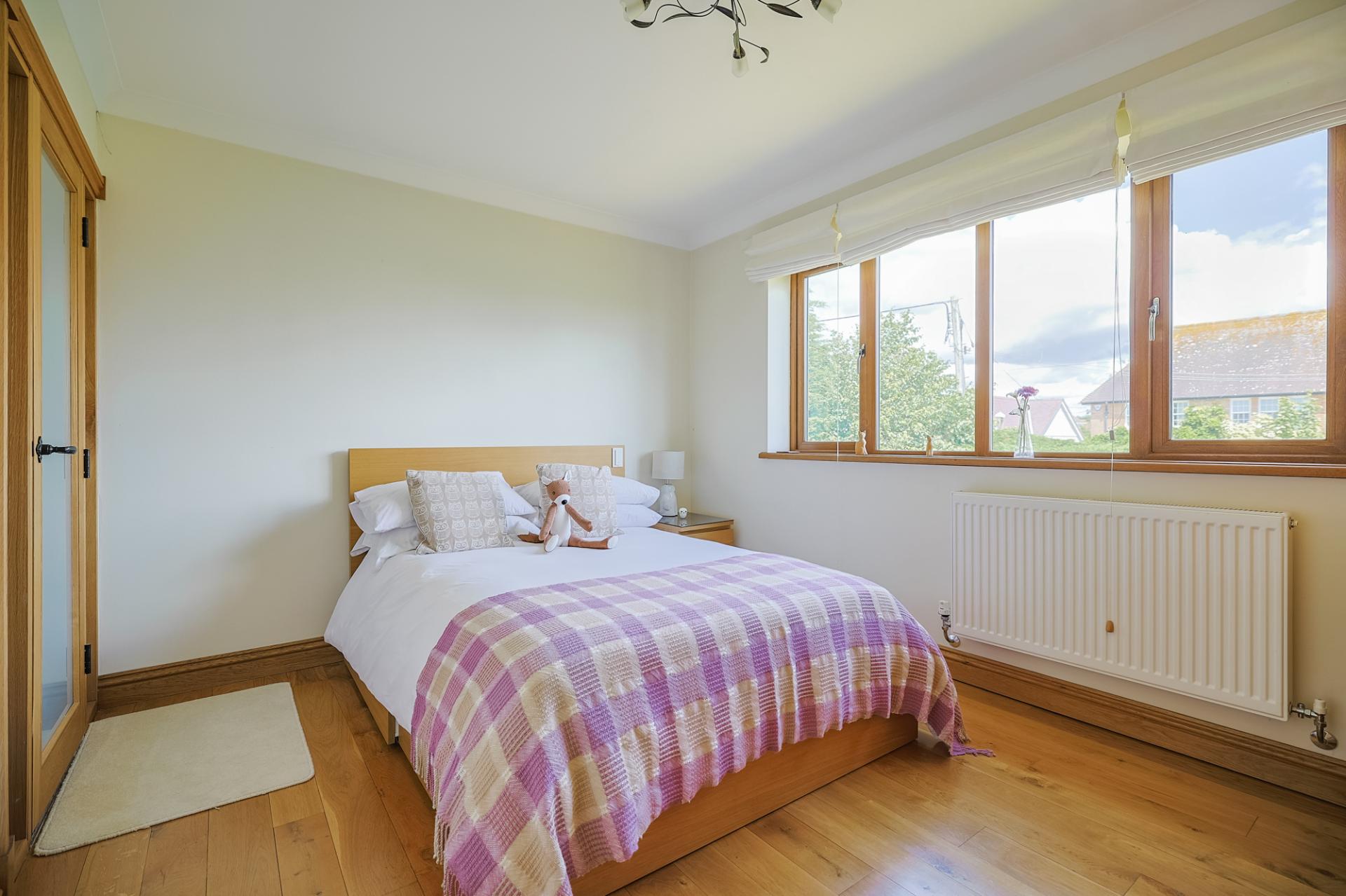 Positioned to the side of the home, bedroom four is filled with natural light from a large window and features oak flooring and coving. A delightful space with garden views.
