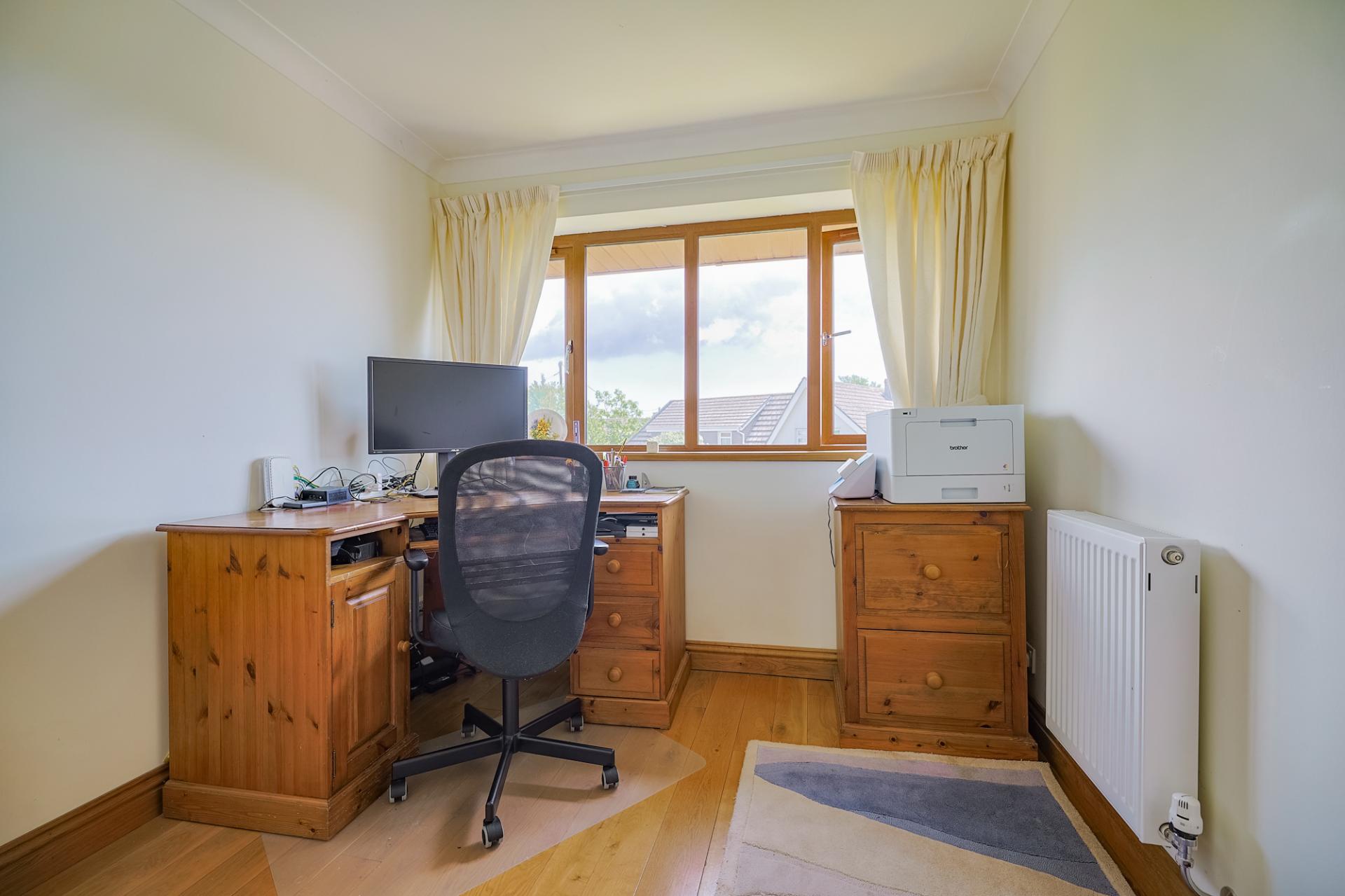 Currently serving as a home office, bedroom five is a flexible space that would make an excellent additional bedroom. With a large front-facing window, oak flooring, and coving, it offers versatility to suit your needs.