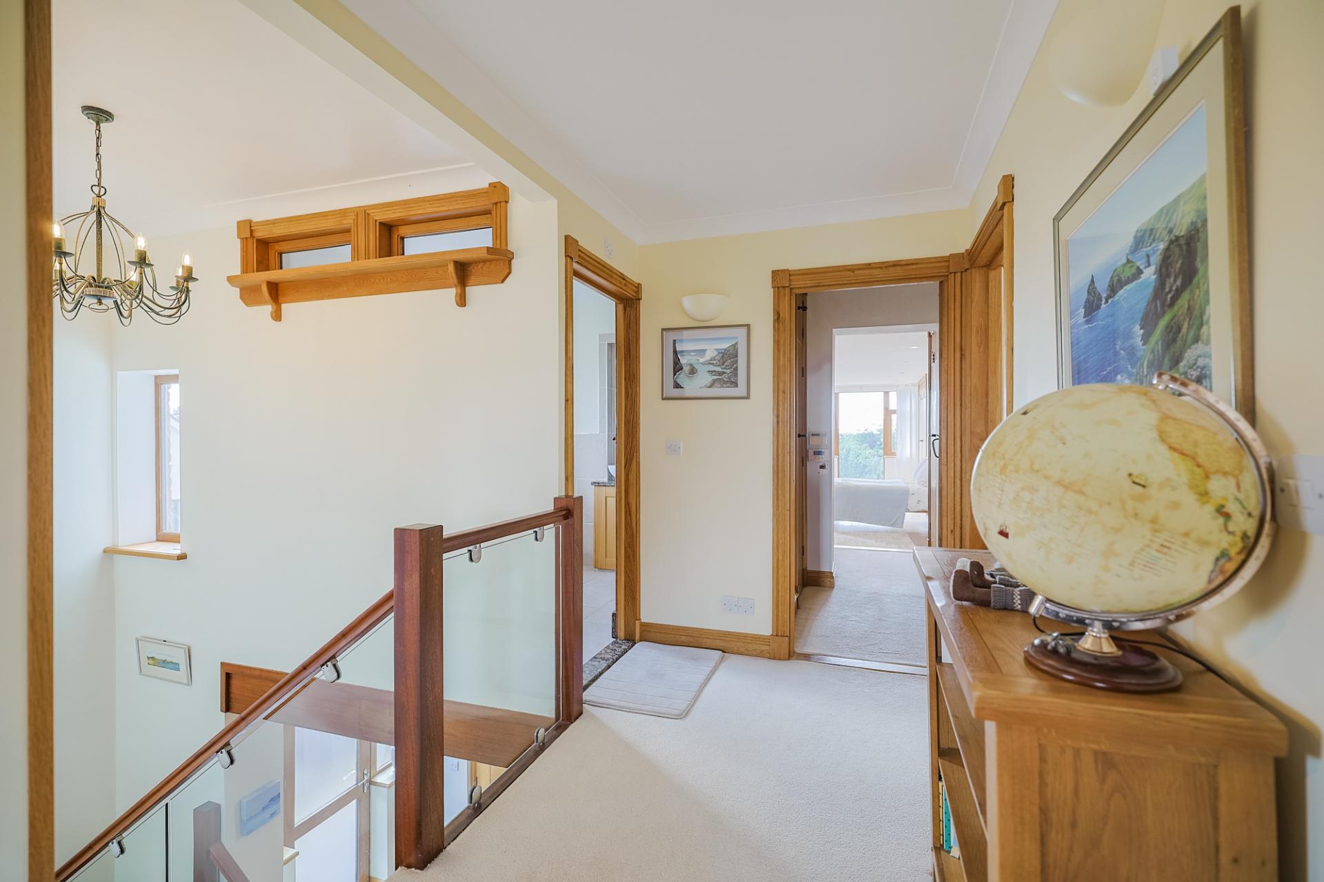 Ascending via a U-shaped stairway with a glass balustrade, the landing is bright and airy thanks to a picture window. The carpeted landing provides access to all bedrooms, the family bathroom, a large storage cupboard, and the Jack and Jill shower room.