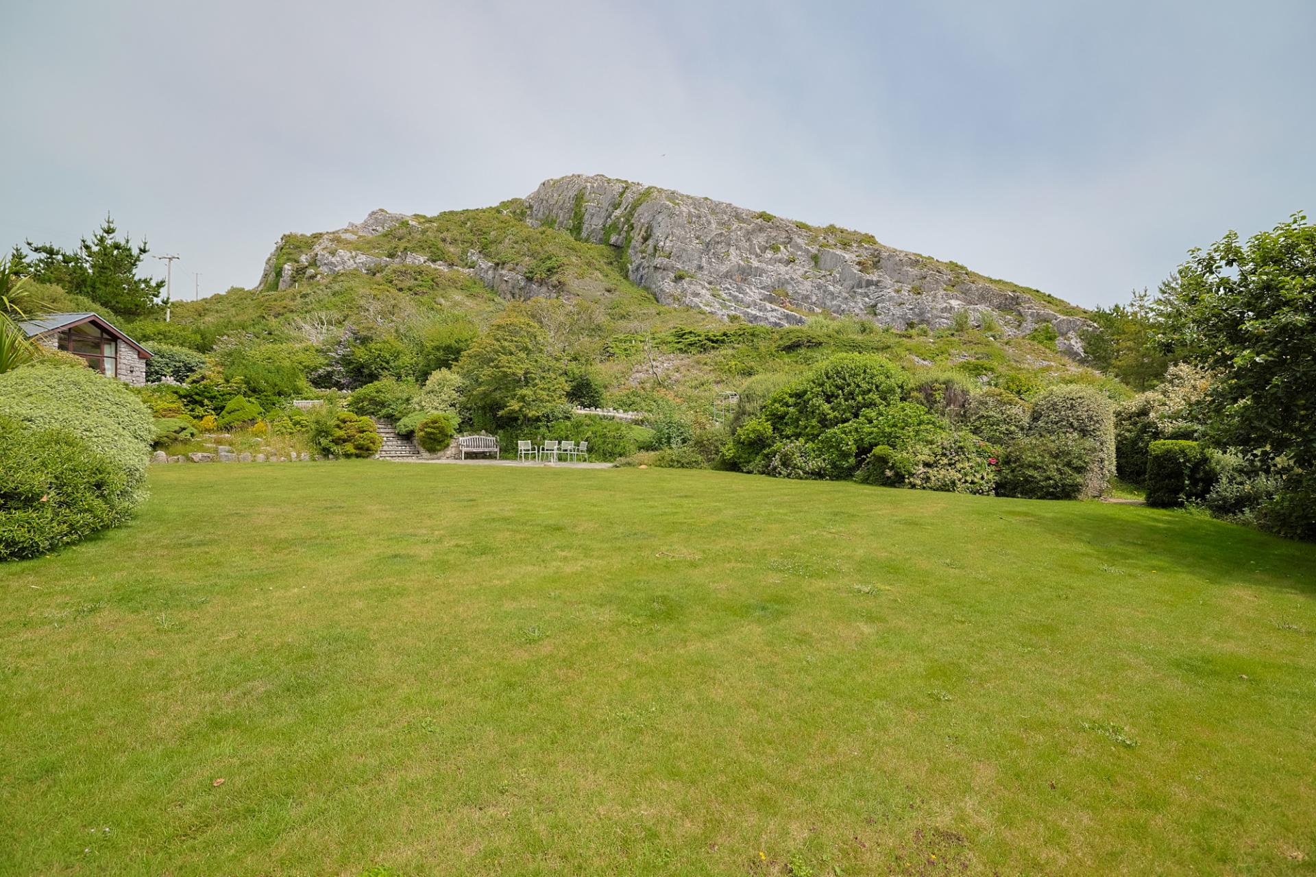 The grounds at Craig Y Don are nothing short of enchanting — a private coastal sanctuary set within approximately 1.81 acres of exquisitely landscaped gardens. Every element has been thoughtfully crafted to complement the natural beauty of its setting. Meandering stone-chip pathways lead you through vibrant flower beds, mature trees, and lush lawns, while the sound of the ocean and birdsong provides a constant, calming backdrop. Discover hidden corners to unwind, from the bespoke firepit with seating to the striking rock feature, artfully designed to mimic a flowing river. As evening falls, the dramatically lit cliff face transforms the garden into a magical space. And at the heart of it all lies the jewel in the crown — a generous front lawn with private stone steps leading directly to Horton Bay, offering unparalleled access to the beach for those who live for the sea, sand, and coastal air.