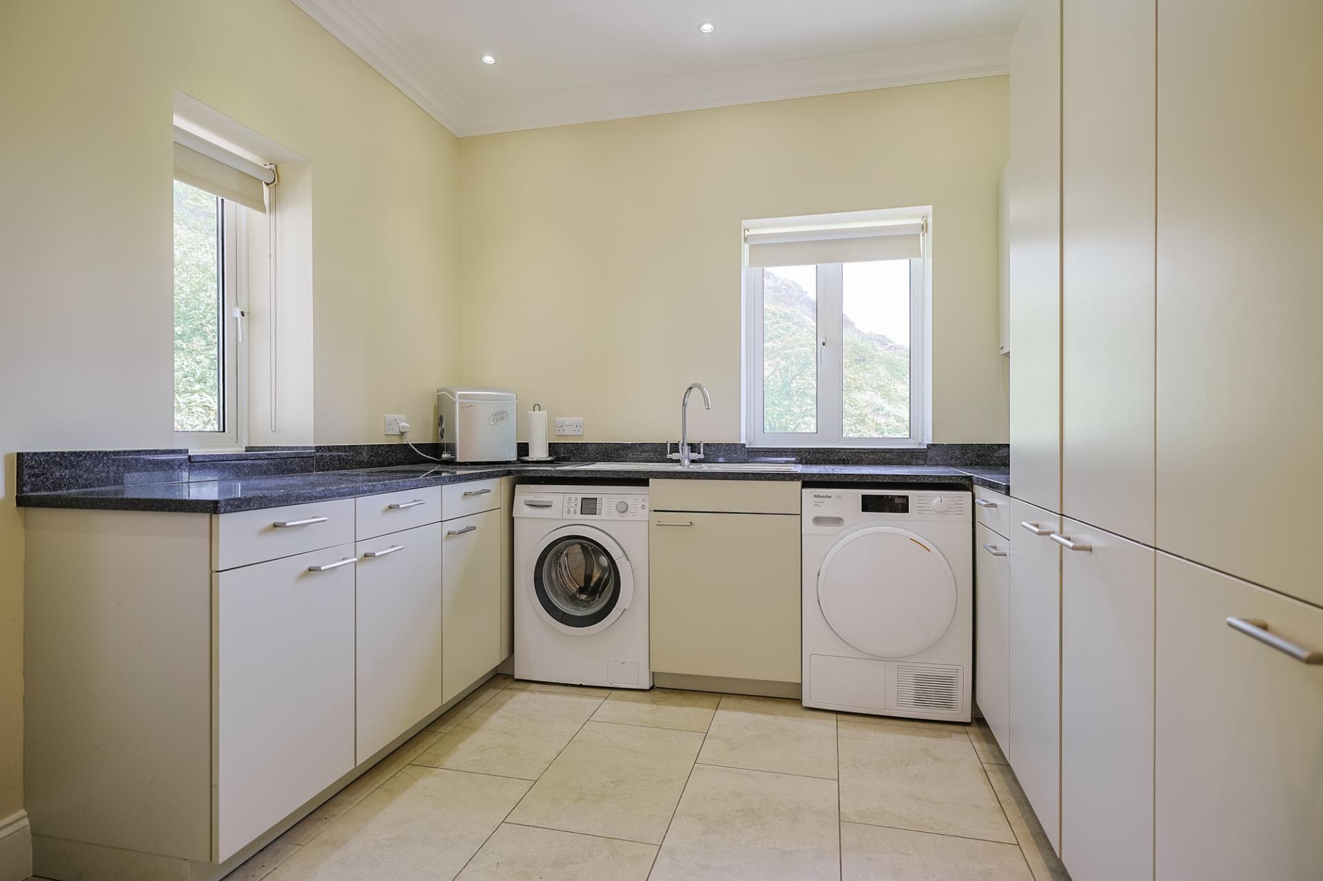 A wonderfully appointed utility room offers extensive base and tall units with granite worktops, a stainless steel sink with drainage, and space for two under-counter appliances. From here, there is access to the single integral garage, an additional ground floor WC, and out to the rear. This space also houses the home’s alarm system control panel.