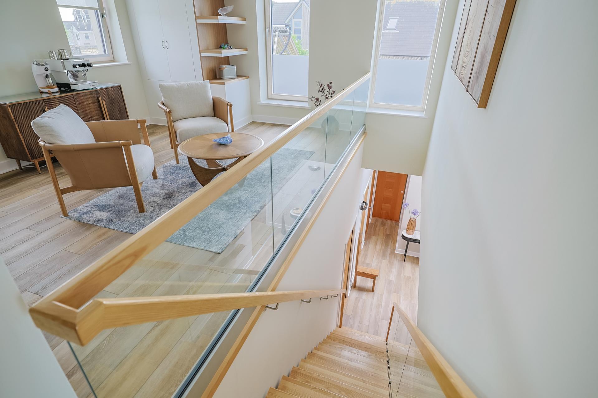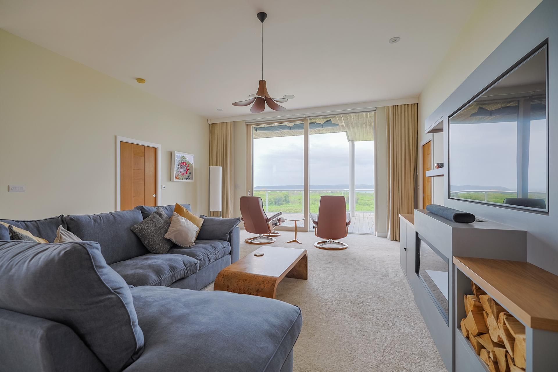 Spanning the full width of the property, the balcony is a truly extraordinary space, offering sweeping views of the coastline, from Cefn Bryn to Lundy Island. Finished in durable composite decking and framed by glass balustrades, it includes external lighting and electricity for day-to-night enjoyment. The roof overhang offers shelter from rain and shade from the sun, making this a perfect spot to entertain or simply watch the changing tides.
