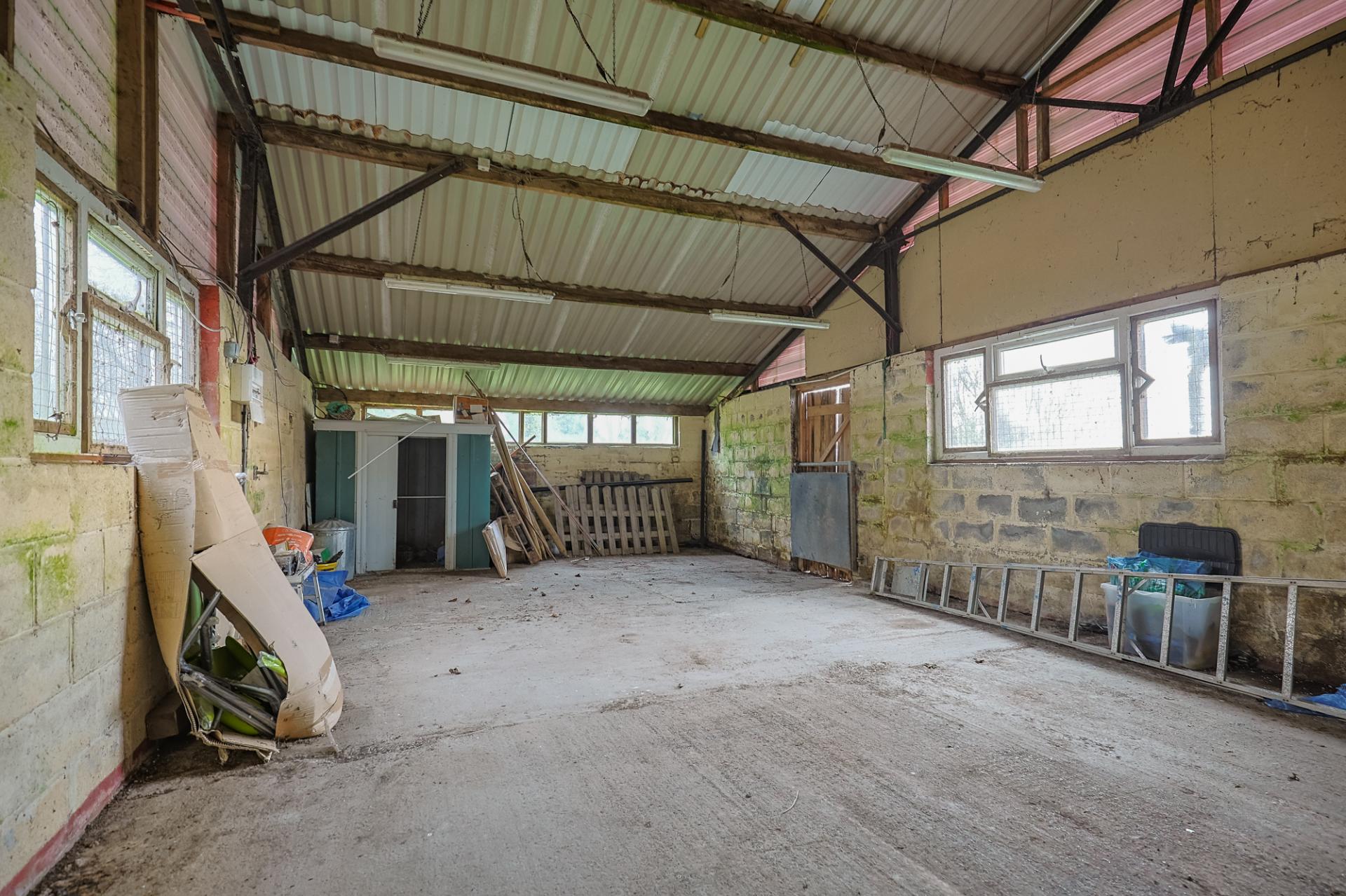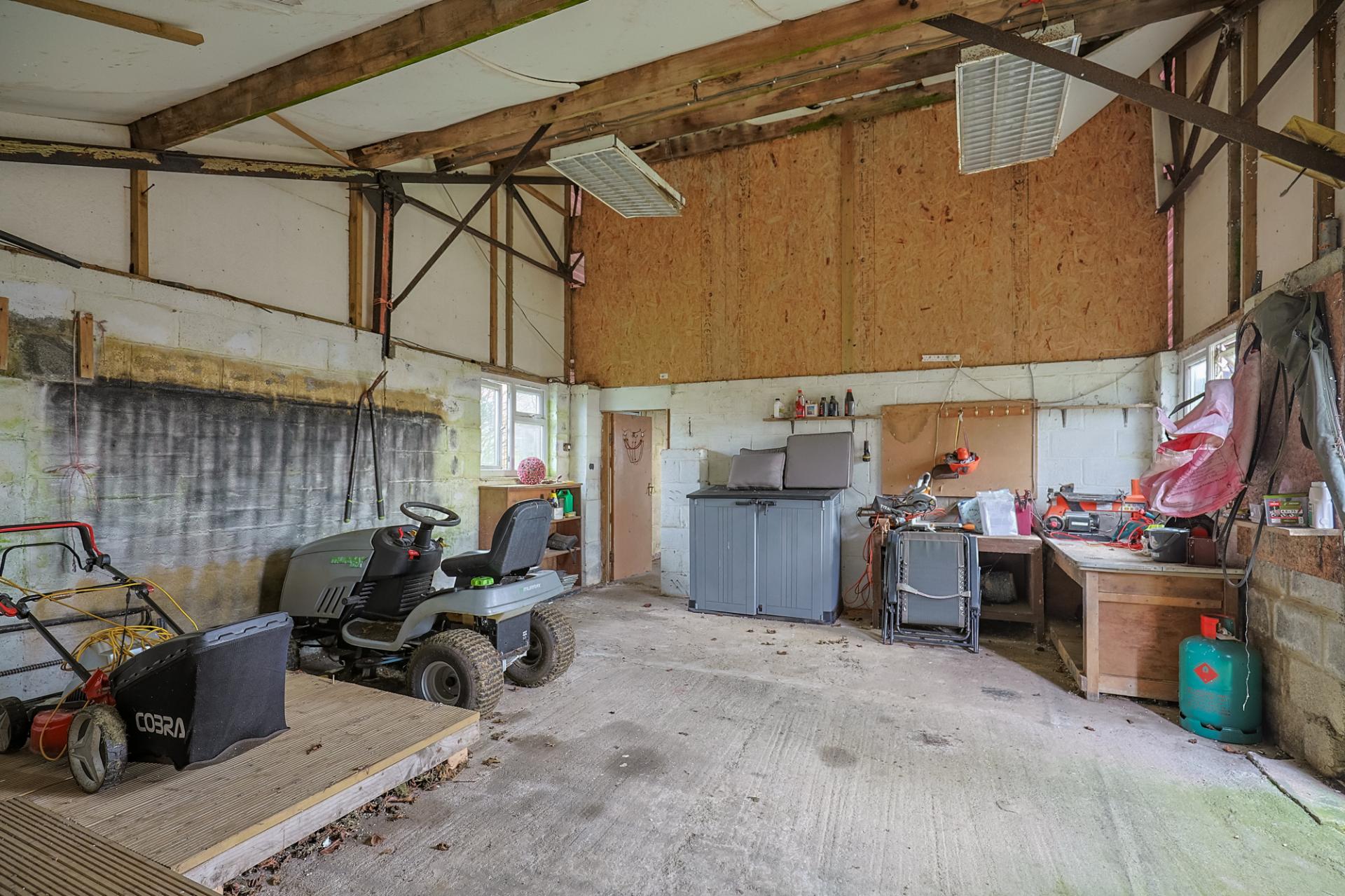 A large outbuilding on the property offers a workshop area, barn, and log store, all equipped with lighting and electricity. This space presents great potential for a variety of uses, from hobby workshops to storage or small-scale agricultural needs.