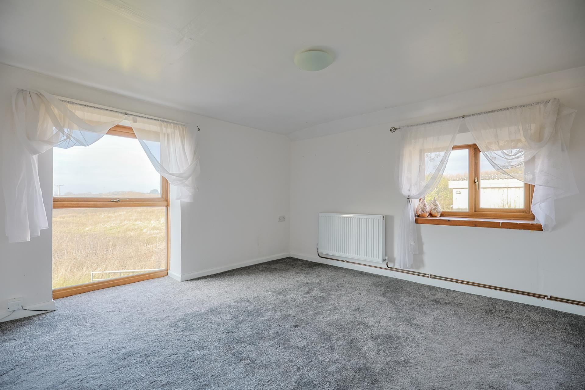 Overlooking the rear courtyard with rural views in the distance, bedroom three is a carpeted double room.