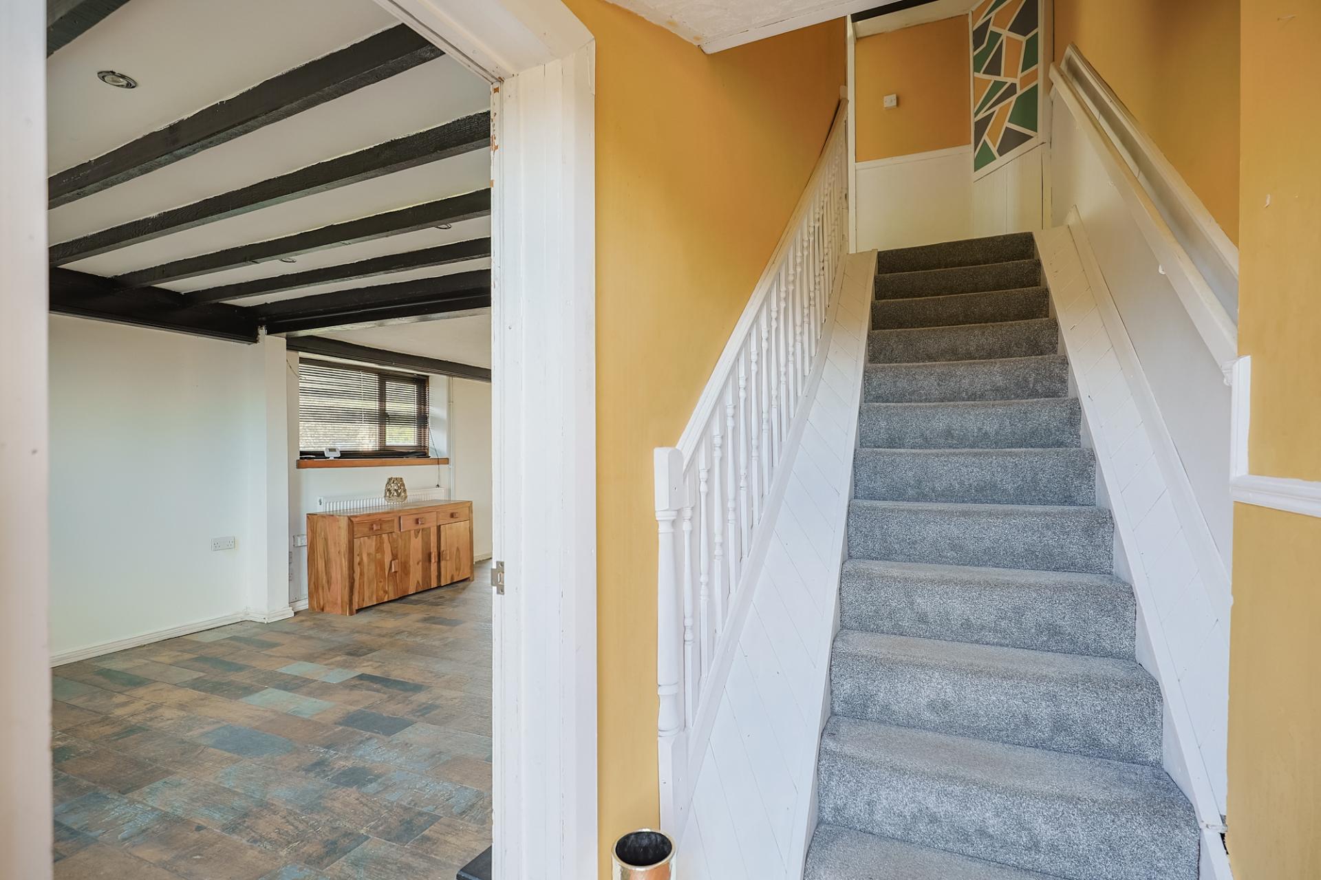 This expansive and versatile space features tiled flooring and dual-aspect windows that enjoy the rural surroundings. Access is provided to a ground-floor shower room, sitting room/study, kitchen, and useful under-stairs storage.