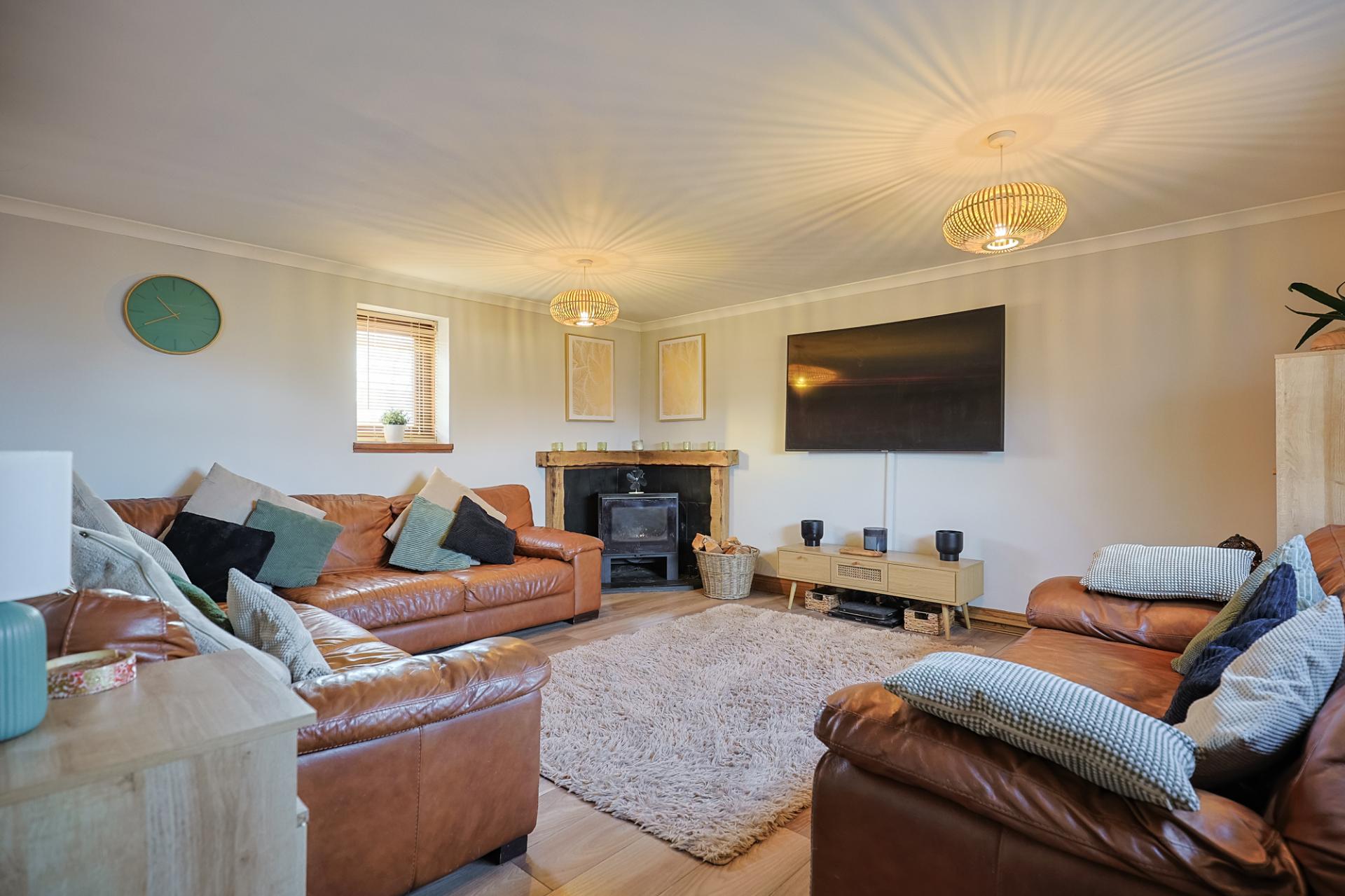 This generous lounge is an inviting space, boasting Vinyl flooring and dual-aspect windows to the front and rear. The focal point of the room is the lovely PANADERO log burner with a slate hearth and surround, enhanced by an elegant oak mantle.