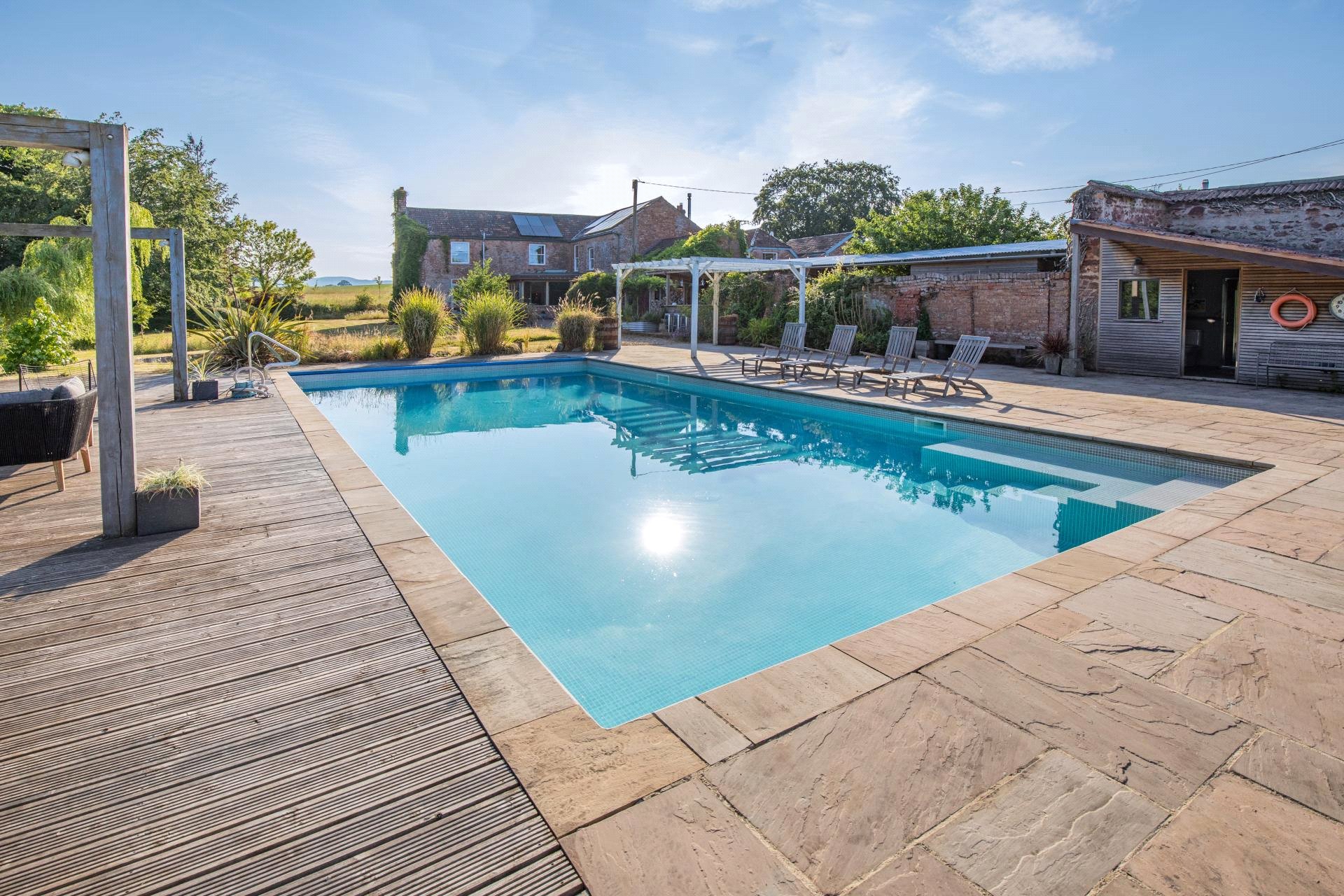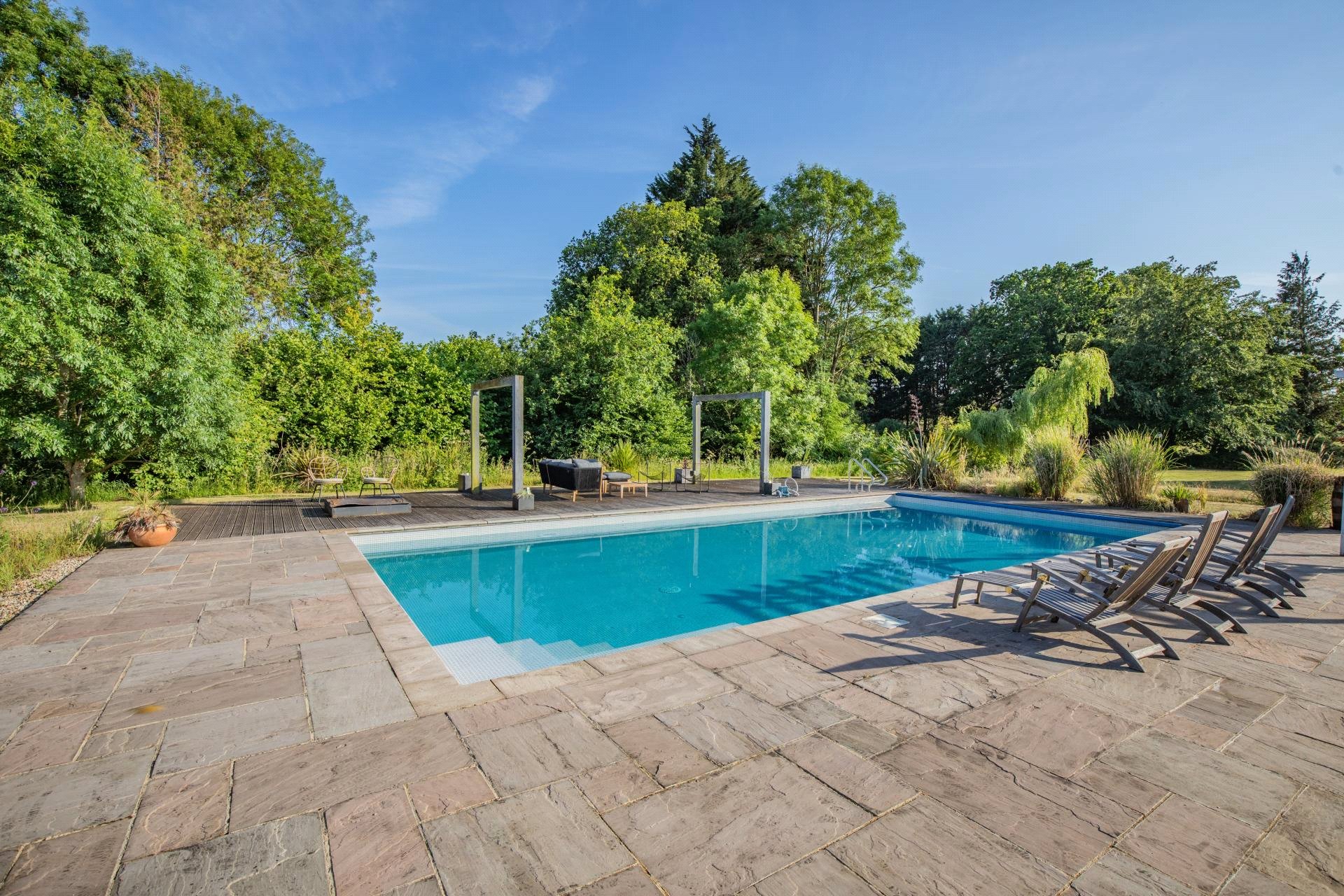 Woodland pathways wind alongside the lake and lead past the historic former icehouse. Adjacent to the farmhouse, a wonderfully maintained heated saltwater pool (which requires no chemicals) is warmed via the PV solar panels. This secluded suntrap includes generous seating areas, a dedicated changing and shower room, and an outdoor kitchen, making it an ideal space for entertaining, relaxing, or simply soaking up the tranquillity.