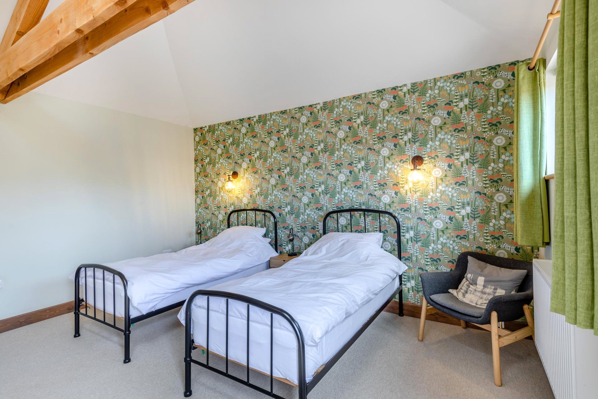 Ample dedicated parking ensures convenience for all guests, making arrival and departure smooth and stress-free. The eight stylish en-suite guest bedrooms, converted with care from the former dairy and stables, offer a choice of king-size or twin layouts, comfortably accommodating up to 16 guests.