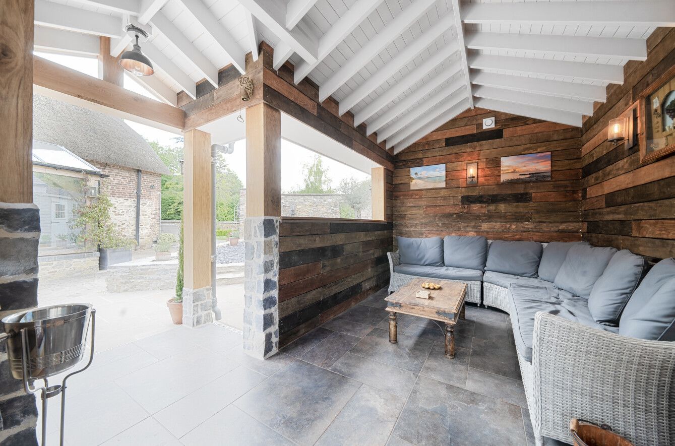 Adjacent to this is the ideal spot for a jacuzzi, tucked away in a sheltered corner and thoughtfully equipped with its own outdoor heater — perfect for keeping the chill off as you step out and unwind in comfort.
