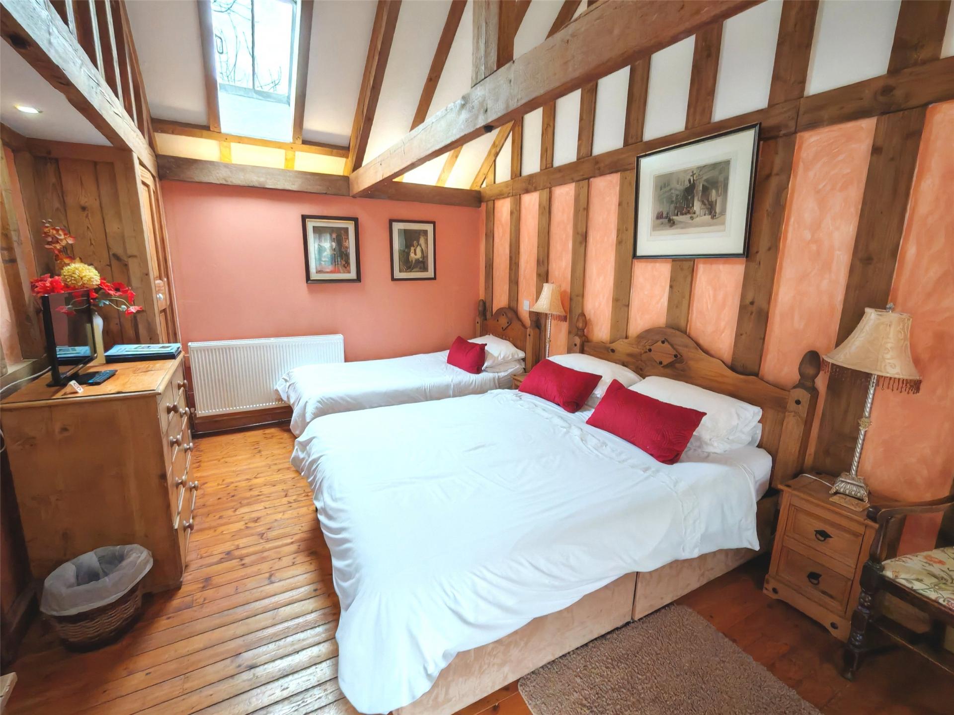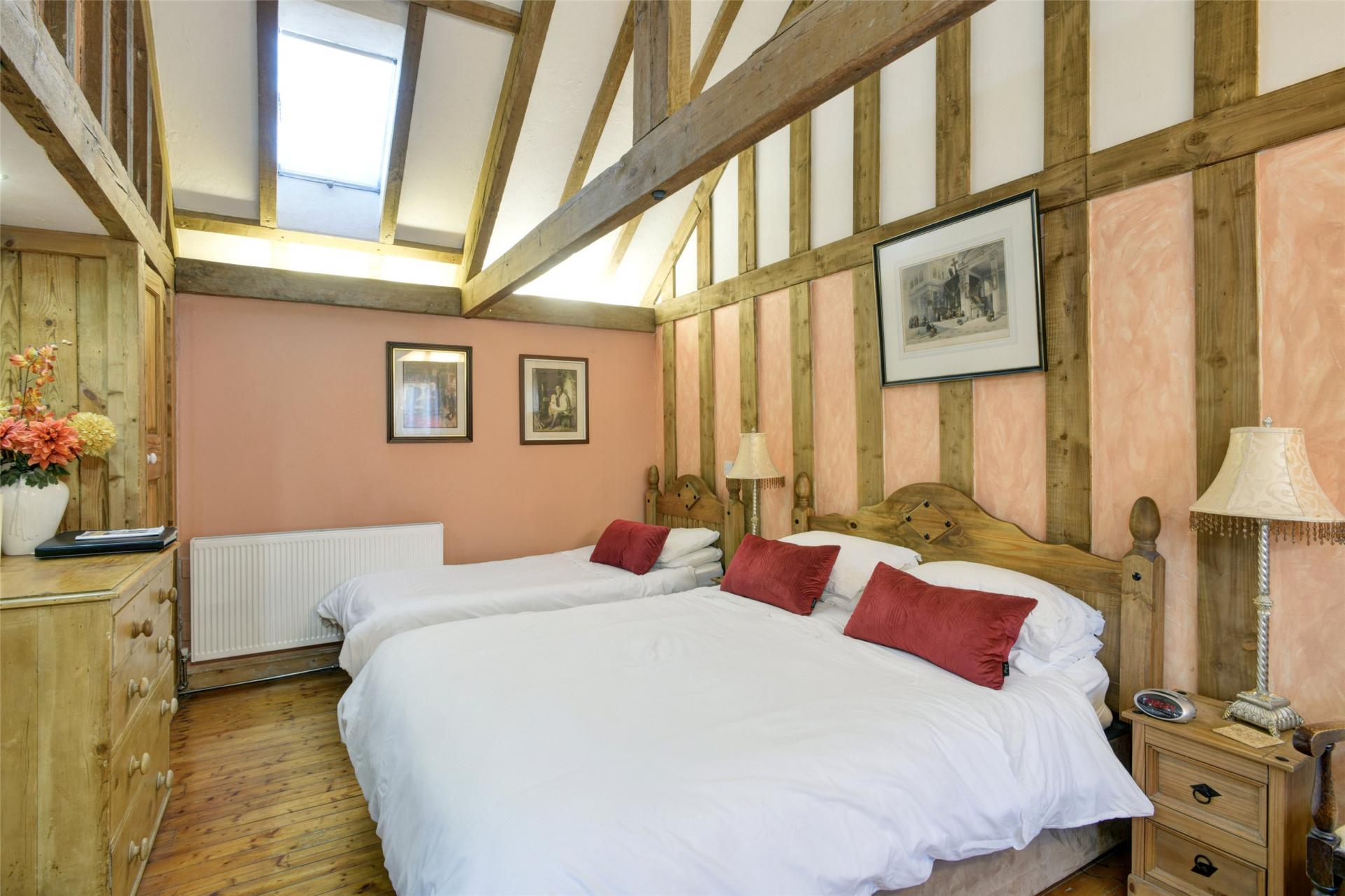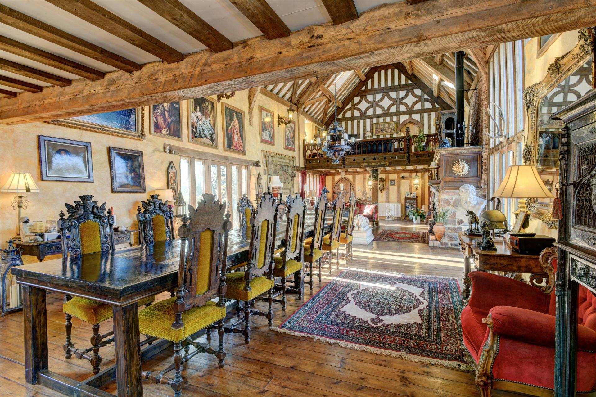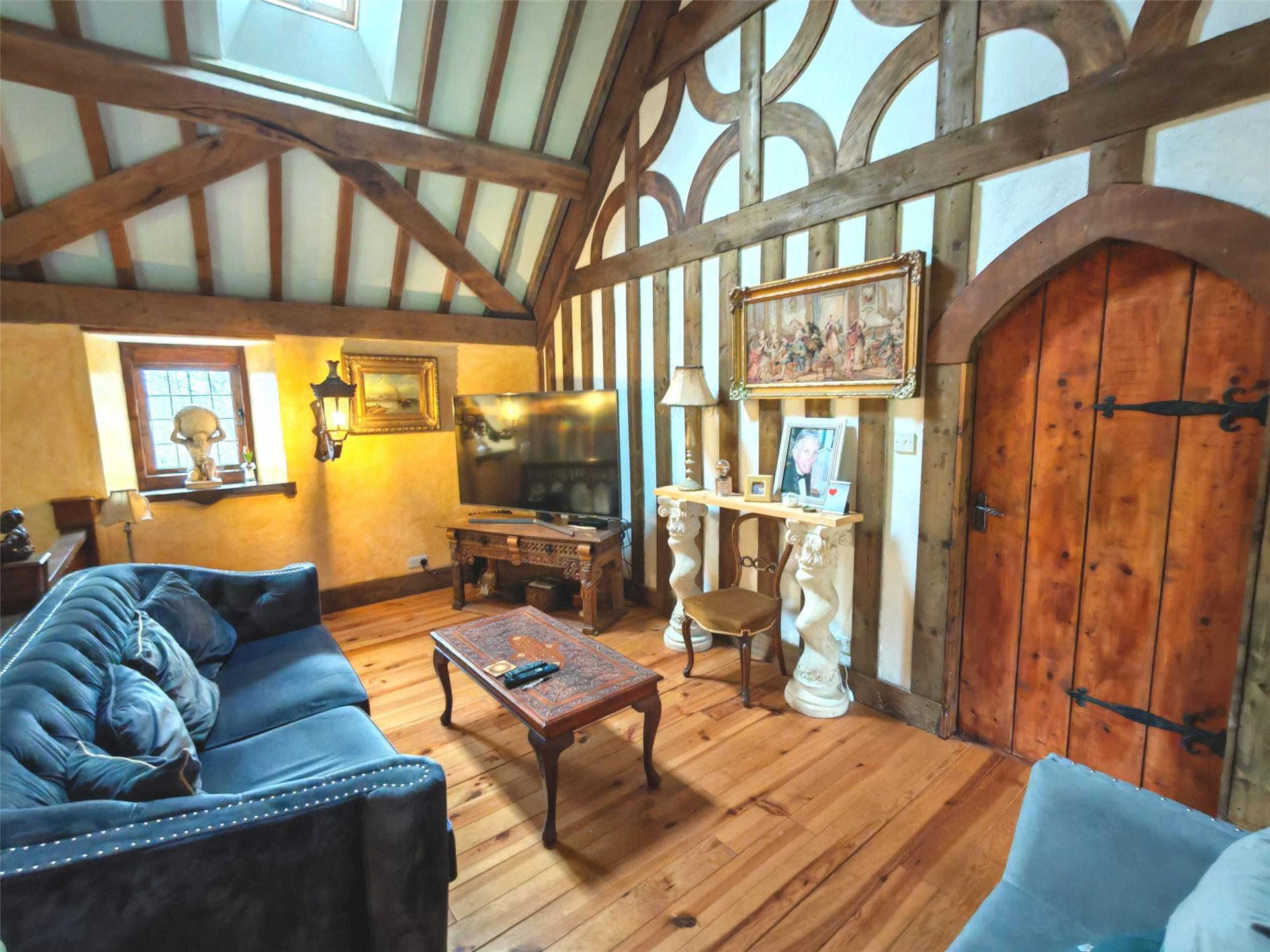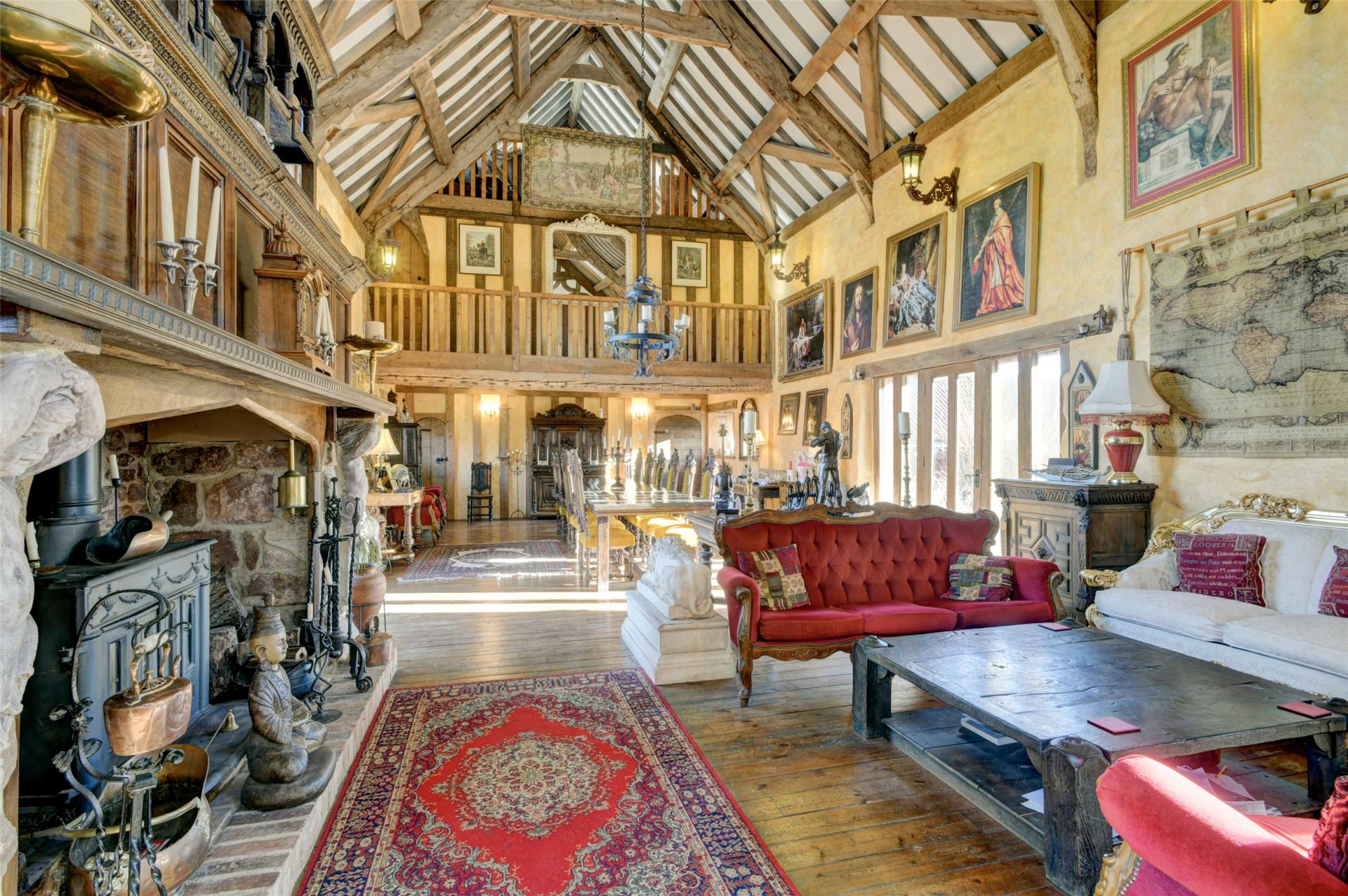 The galleried main reception room befits a property with 16th century medieval origins and provides a stunning living space nearly 50 feet long and 19 feet wide. Flooded by natural light from the large oak panelled glass doors and windows to both the front and rear aspect. Underfloor heating plus radiators and a wood burner ensure the room offers a cosy feel.