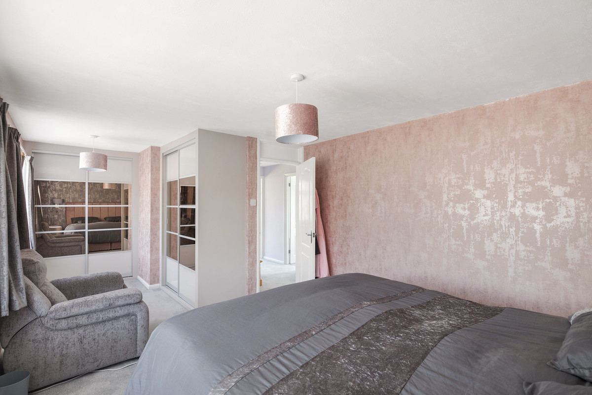 Ascending the staircase, you'll find a large landing leading to all three bedrooms. The principal suite is complete with a walk-in wardrobe and two well-appointed double bedrooms, all serviced by a three-piece family bathroom.