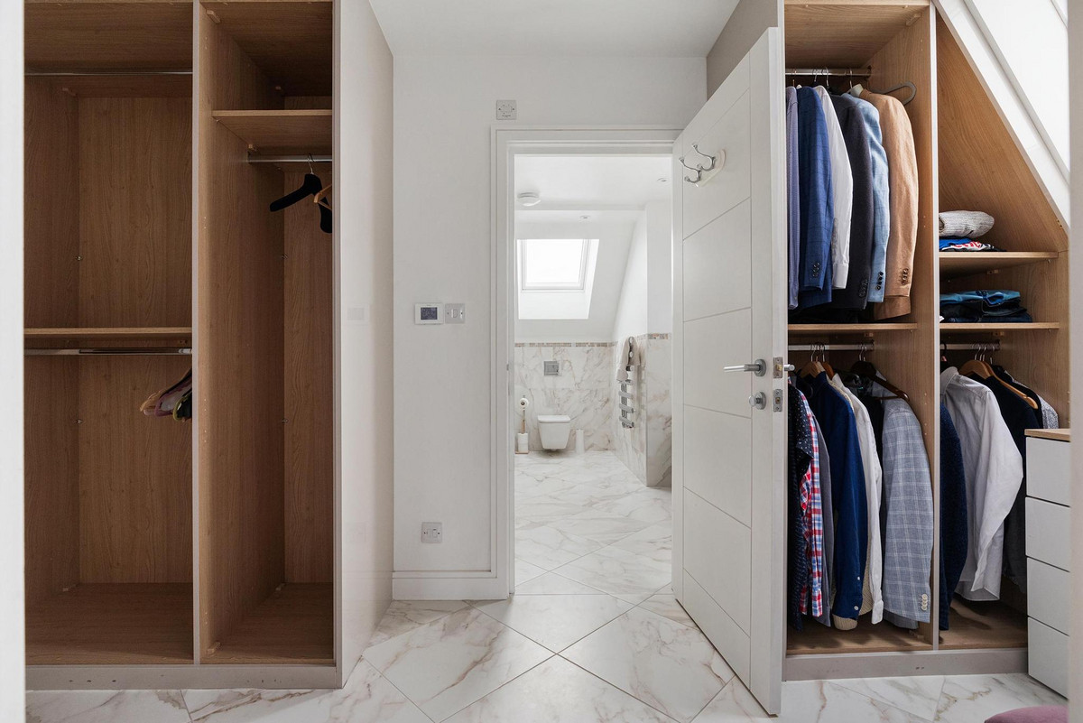 Ascending the bespoke staircase to the first floor reveals three double ensuite bedrooms, each a testament to exceptional design and meticulous attention to detail. The principal suite elevates the concept of luxury living with a four-piece ensuite, his and hers basins and a fully fitted dressing room. The second bedroom, equally well-appointed with a three-piece ensuite and abundant storage space, reflects the overall commitment to unparalleled elegance.
