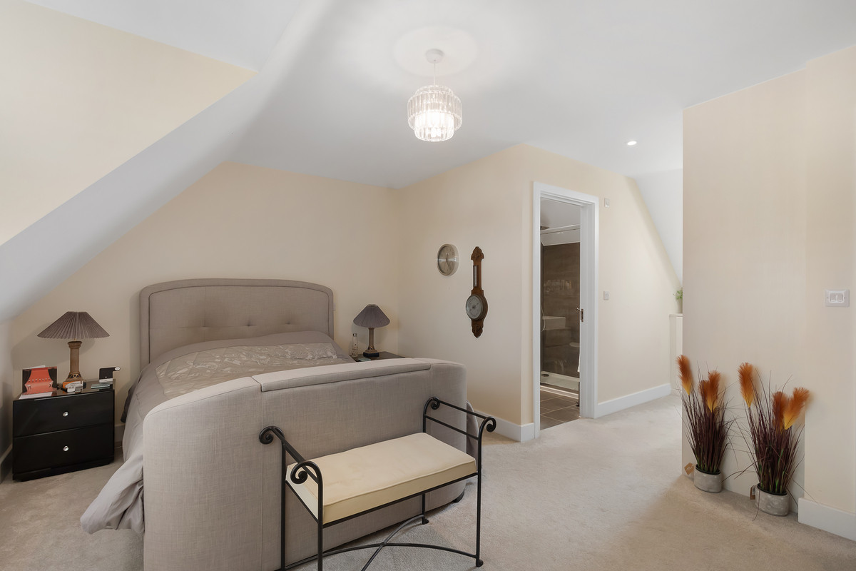 Ascending to the second floor reveals the principal suite. This space, complete with fitted wardrobes and an additional ensuite, has been meticulously designed with exceptional interior aesthetics in mind.