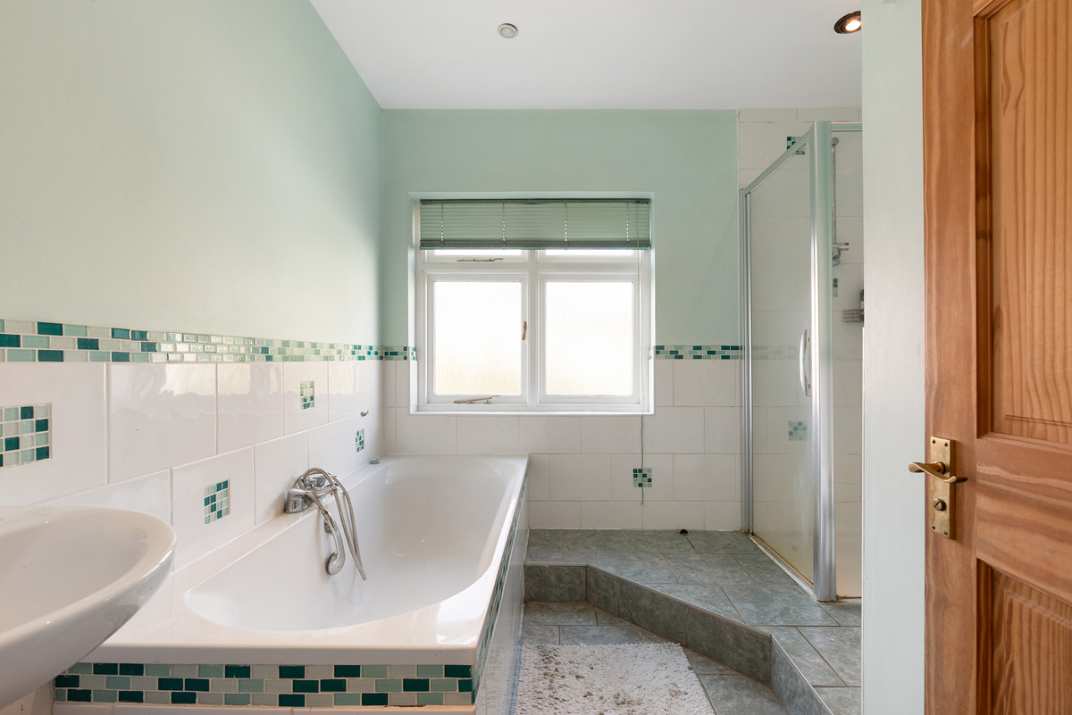 Upstairs, the large landing leads to five well-appointed bedrooms. Two spacious doubles, along with two additional double bedrooms and a single room, all enjoy the convenience of a four-piece family bathroom.