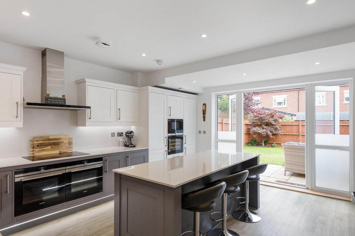 This impressive home boasts two exquisite reception rooms on the ground floor: a spacious living room that perfectly balances grandeur and comfort, and a magnificent kitchen diner with a generous breakfast island offering both storage and style throughout the kitchen. Step from the kitchen into your private, sun-soaked south-facing rear garden, seamlessly extending your living space outdoors. Host with elegance in the formal dining room, with natural light from a skylight and again providing direct access to the immaculate south-facing garden. The home also has a large garage.