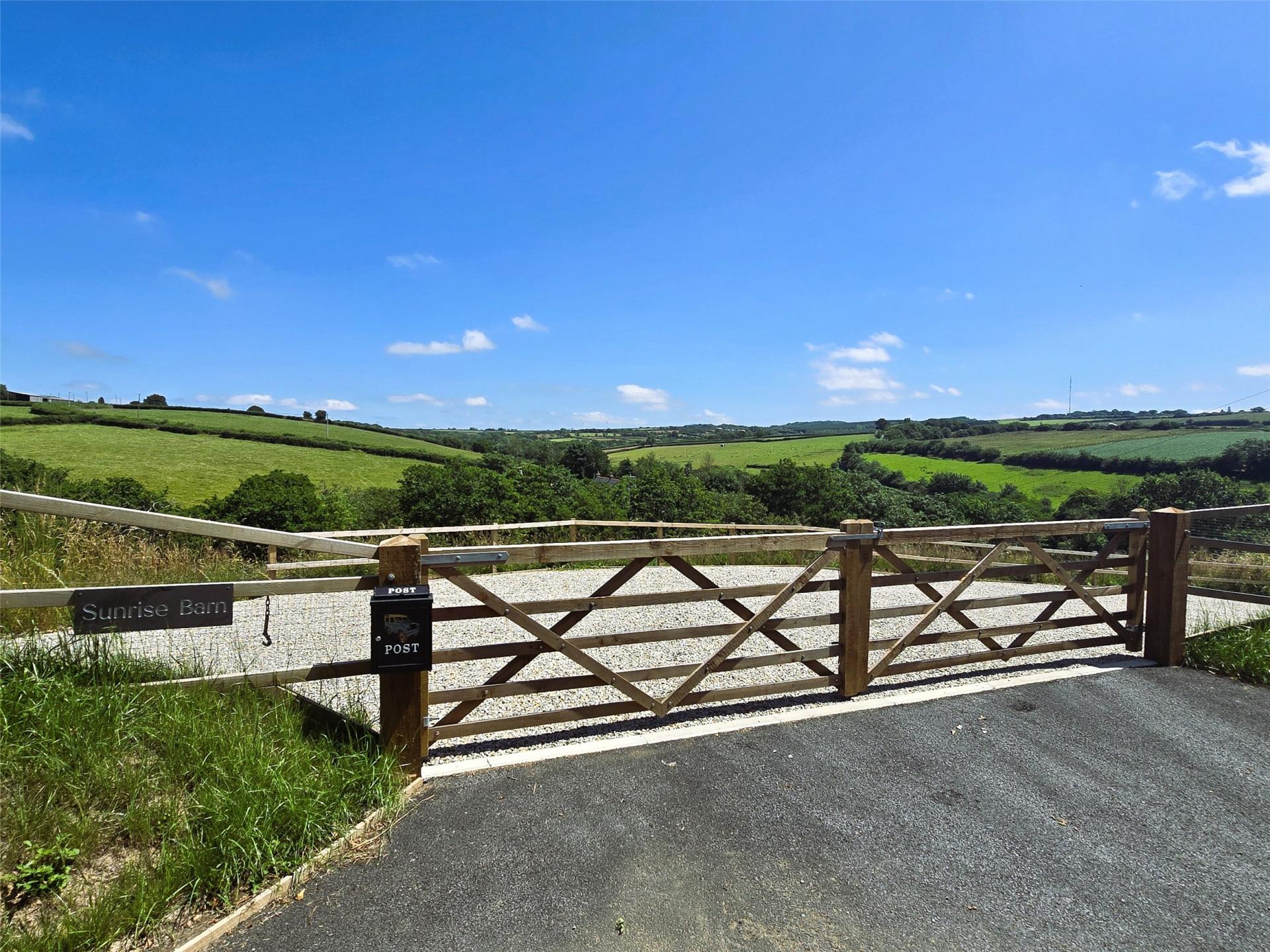 Coming through the pair of fivebar gates at the head of the drive the setting and countryside opens up in front and to the side. Just through the gates is ample room for a boat/horsebox/motorhome whilst the driveway slopes gently off to the side having ample room for multiple vehicle and bordered on one side by a sleeper retaining wall behind which the vendor has laid cable to allow for lighting, an EV charger connection and for those who may wish to install, electric gates.