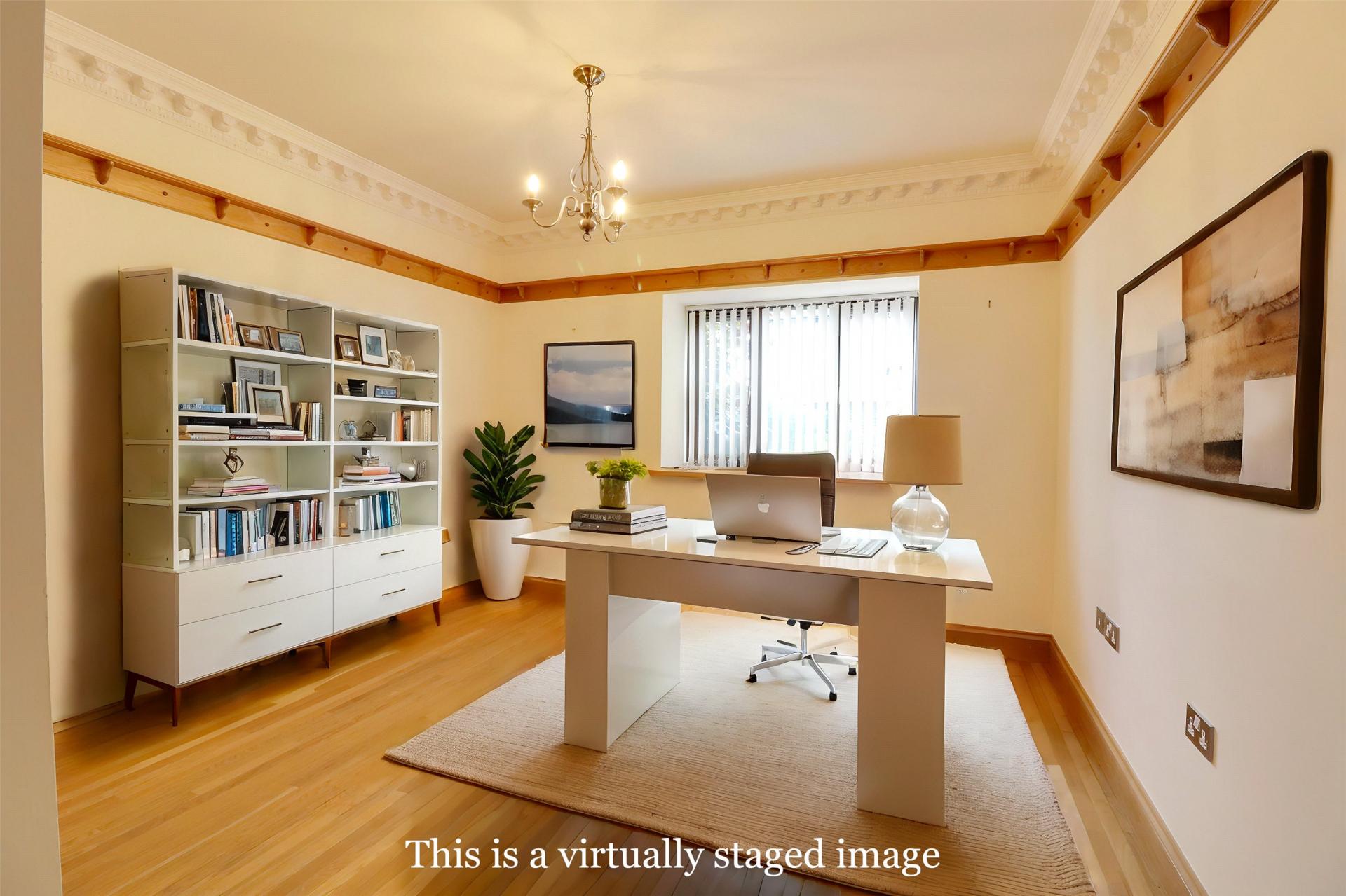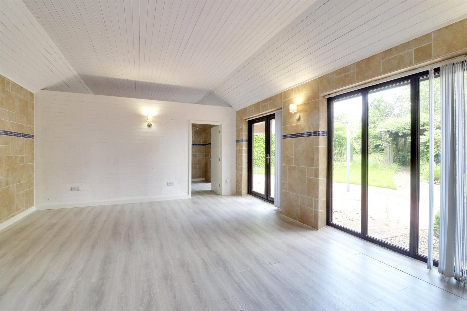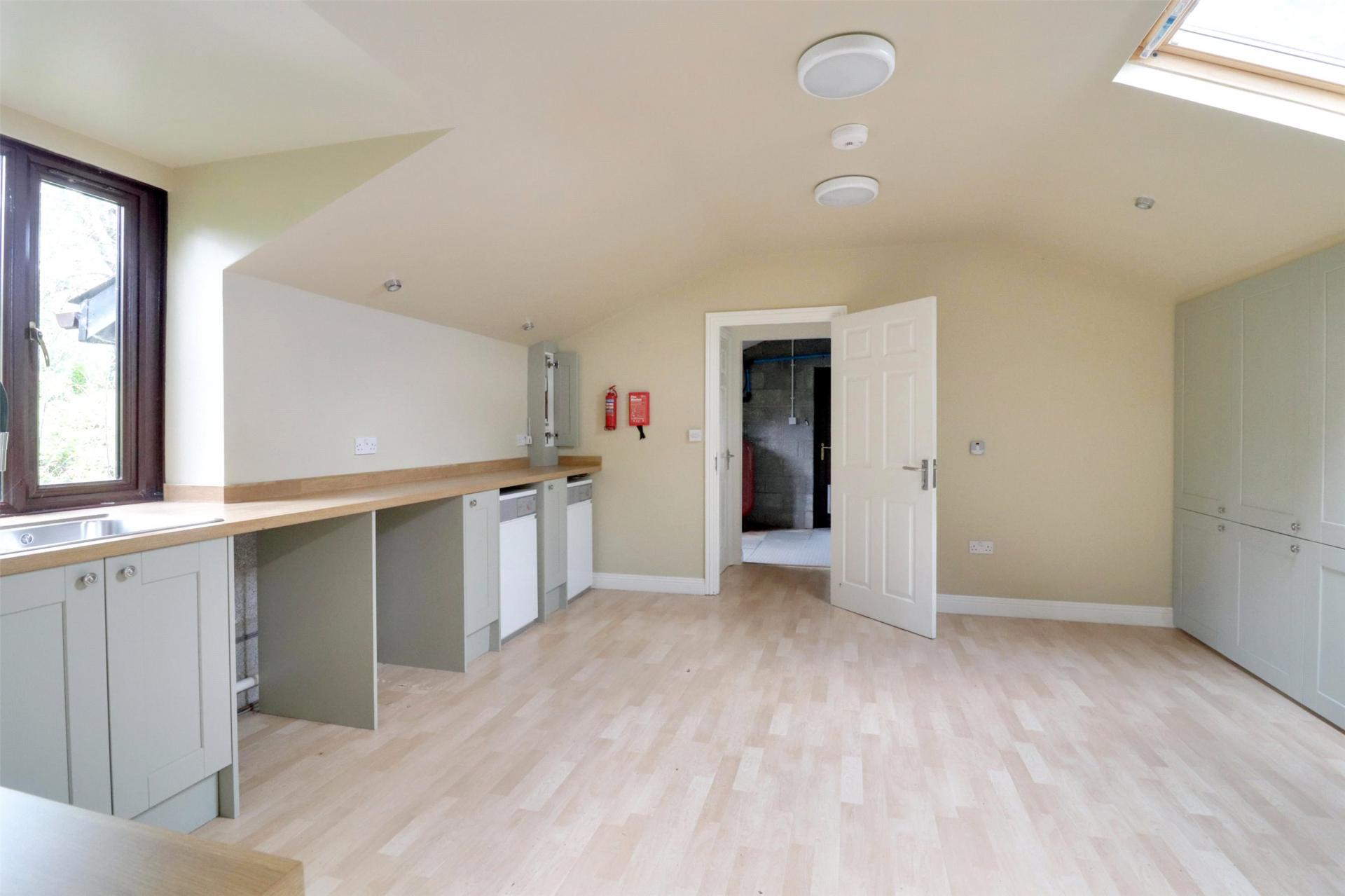 Beyond the gate found adjacent to the double garage on the main drive, you enter your own world where the stature and shape of this unique home comes into its own. Two things strike you immediately, one being the curvature of one part of the house and the other is the large BBQ area running along what was formerly an indoor swimming pool but is now a delightful, spacious guest suite. The property offers external elevations of brick, stone and colour wash render under a slate roof. Opening the front door, you are greeted by an impressive vaulted reception hall, complete with lift entrance, where you get a sense that this home is really something quite special. The fine Oak staircase makes quite a statement. A wide arch opens into the curved drawing room which has no less than four sets of opening double doors to the outside and a Minster Stone fireplace with log burner providing a focal point. What an ideal place with which to entertain and one can only imagine the enjoyment to be had during the summer afternoons and evenings in this room with all the doors open, listening to the sound of the fountain outside. From the hall a small flight of stairs leads down into an inner hall where the study, cloakroom, a large store cupboard and door to the outside are found. Double doors lead into the impressive 28’kitchen/breakfast room which is another wonderful entertaining space complete mood lighting and featuring an extensive range of wall, floor and drawer units with associated polished granite work surfaces, island unit complete with sink and Quooker instant hot water tap. Appliances include a Rangemaster induction hob with double oven hob, extractor, microwave, dish washer, coffee machine and a Rangemaster double door fridge freezer. A honeyed Oak floor offsets the cream and black from the kitchen units and worksurfaces beautifully, and gives a lovely warm feel throughout the room. The flooring continues through the double doors into the garden/sun room which has almost full height glazing overlooking the pond. Sitting in here you get a sense of calm with the pond outside and the sound of the water tumbling down from the fountain. Opening up from the kitchen a rear hall gives access via a side door out to the second driveway and a further door connects to the double garage. A spiral staircase leads to the upper floor Annex which has an open plan sitting room/ kitchen/bedroom. The kitchen area has a full range of matching wall and base units, integrated fridge freezer, double oven and four ring electric hob and along run of worksurface with bistro bar at on end. On a clear day, Dartmoor can be seen in the distance beyond the village church on one side of the annexe and on the other are far reaching rural views across the fields. A bathroom with three piece suite completes the accommodation. Planning has been passed to create further accommodation (Torridge District Council 1/1071/2022/FUL). Accessed through the double garage is a large utility/laundry/boiler room complete with extensive units, work tops, appliance space, two boilers serving the hot water and heating. Rounding off the accommodation is a plant room complete with geothermic ground source heat pump, running gear for the photo voltaic panels found on the guest suite roof and a gardener’s WC. whilst a door leads out into the rear garden.
