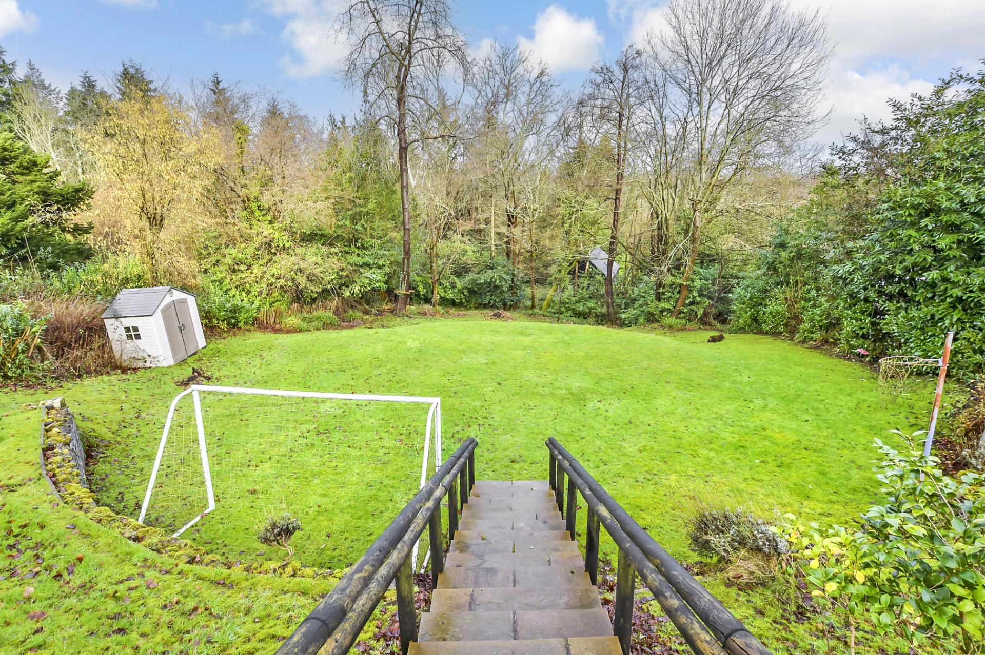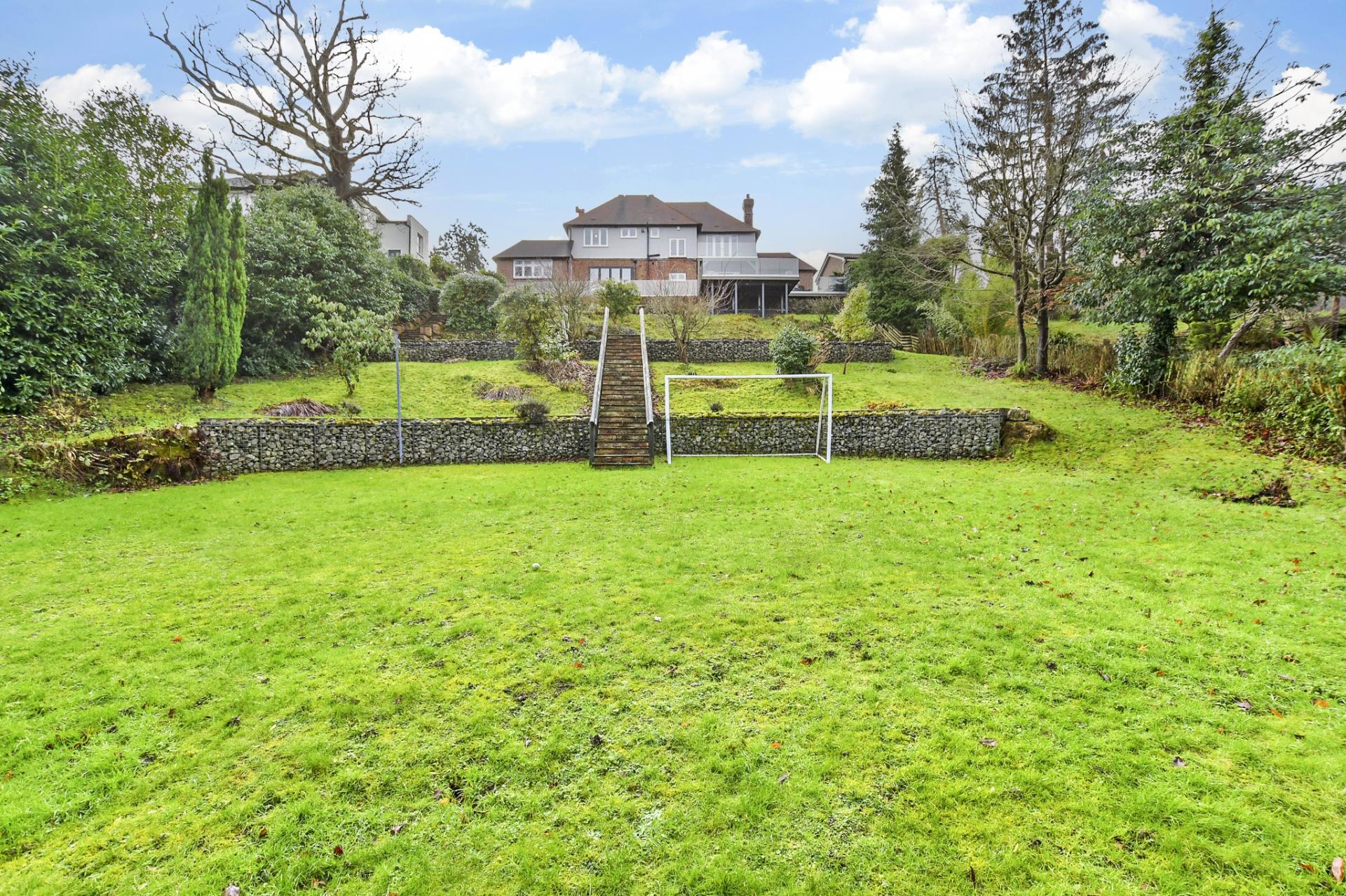 Outside there is a garage and the wonderful decked rear terrace where you can spend many hours just relaxing in the sunshine admiring the surrounding country or hosting a barbecue party. Steps lead down to a superb tiered rear garden with charming gabion walls, sweeping lawns with impressive trees and shrubs including the lower lawn that is large enough for a game of football.