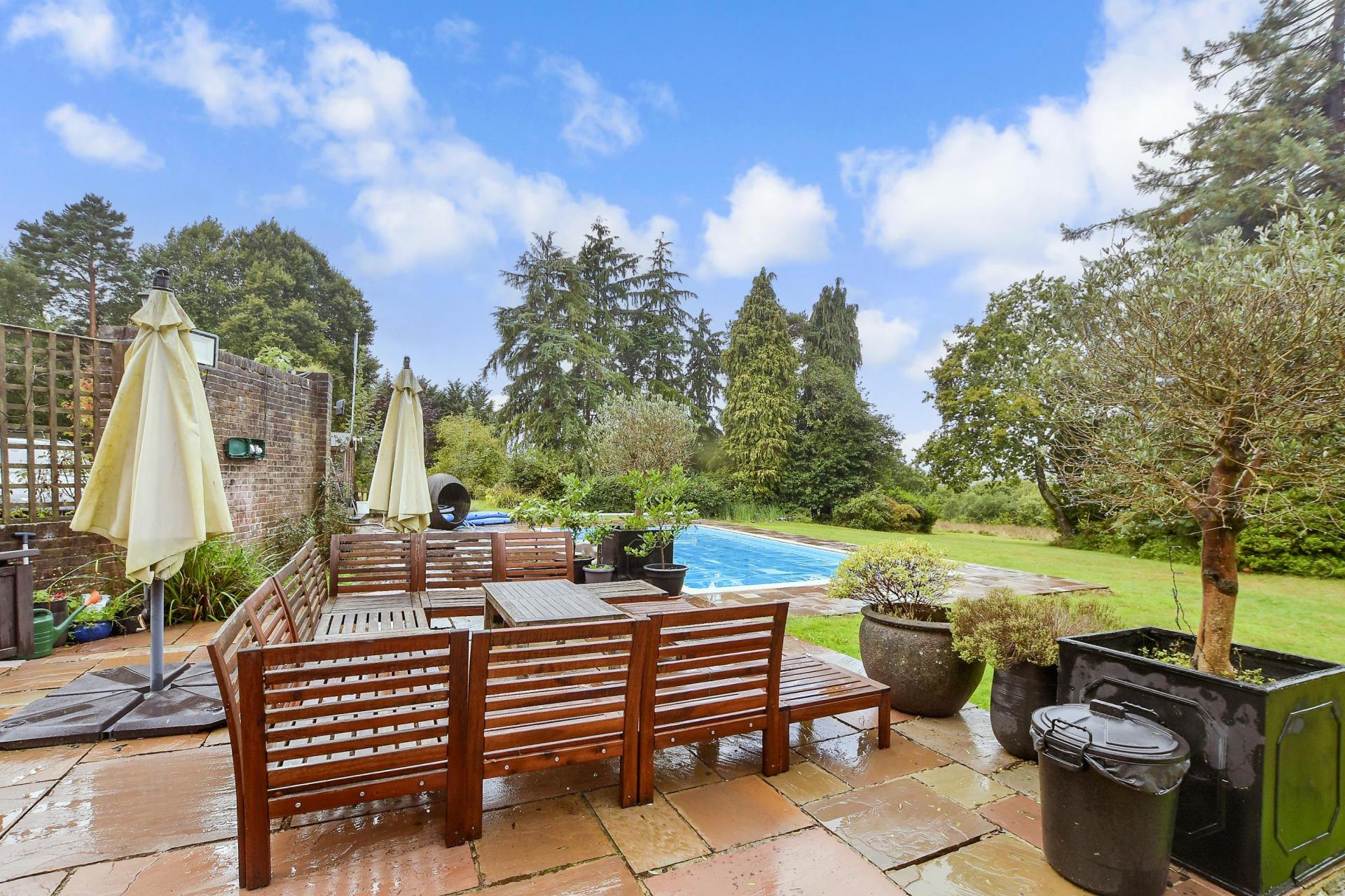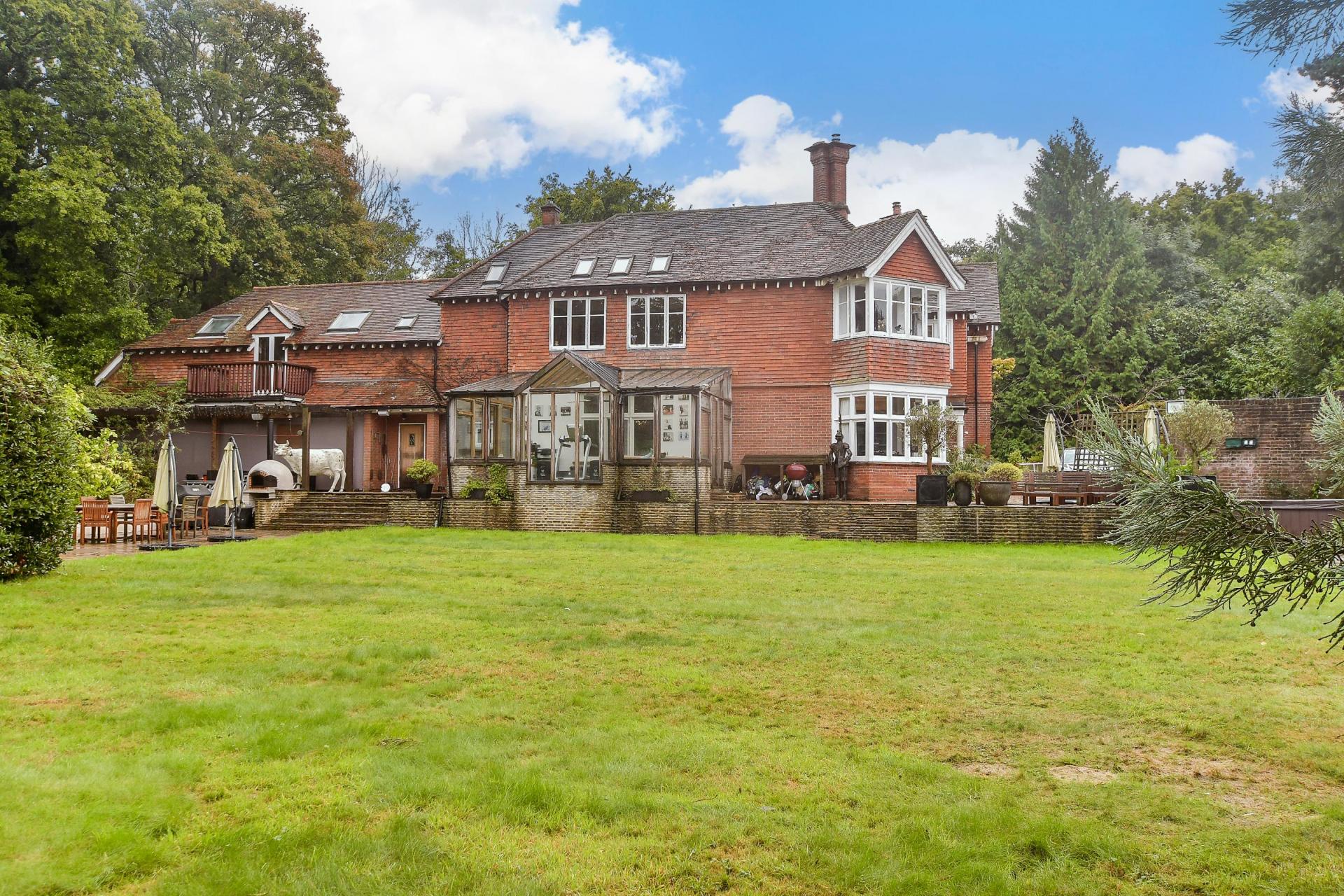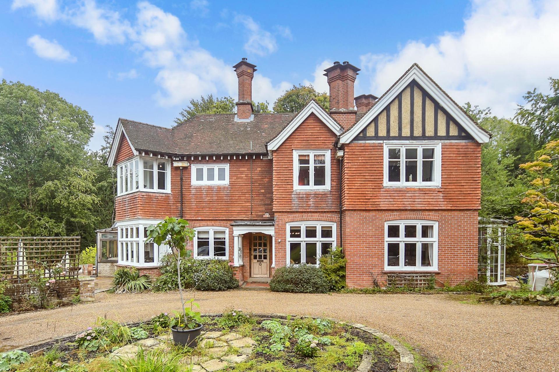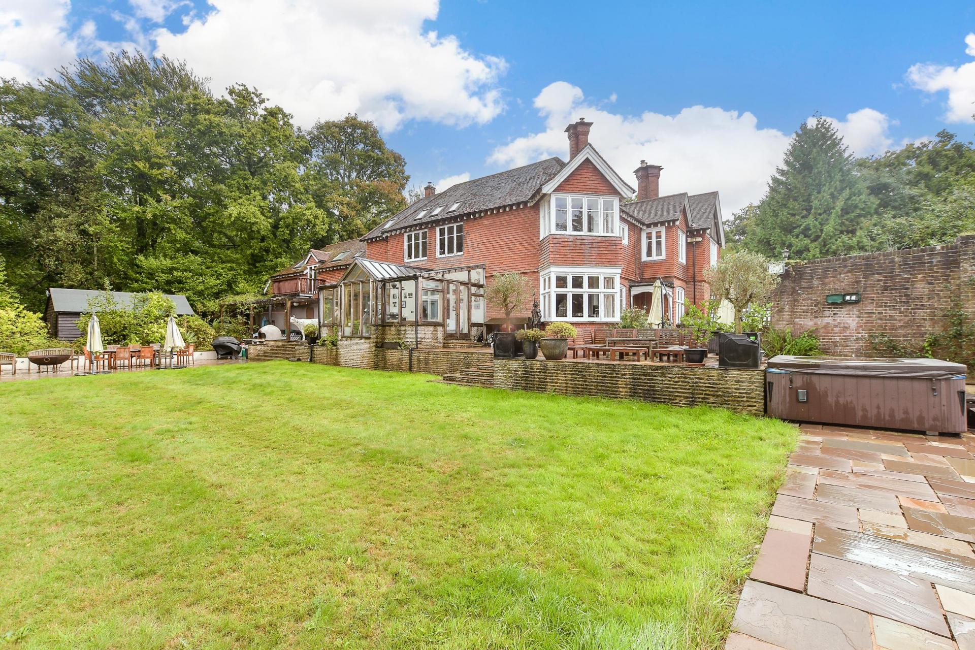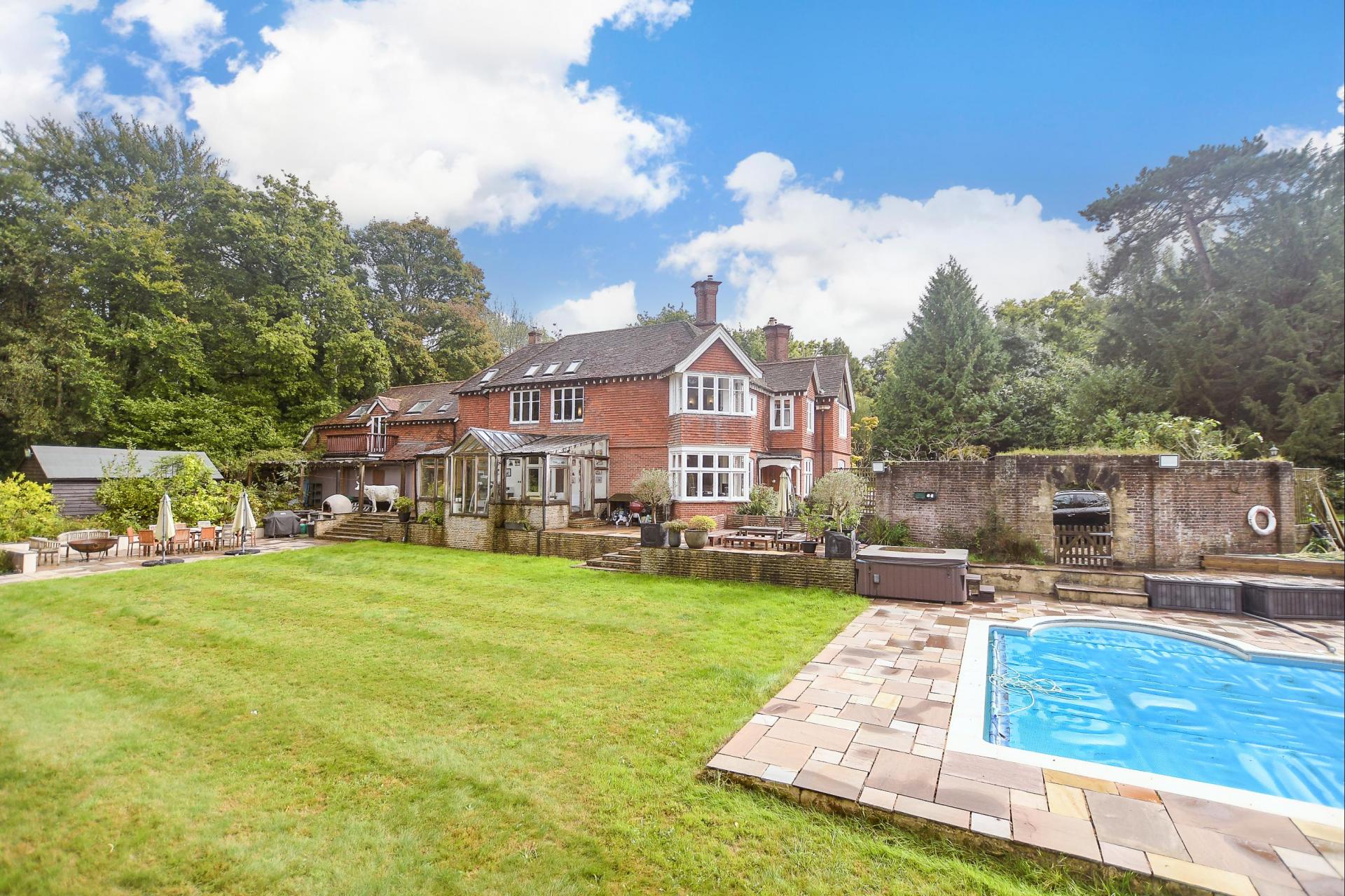 A handsome detached Edwardian home with capacious rooms and outdoor pool set within 12.96 aces of gardens offering stunning views of the surrounding Sussex countryside, yet under 1 mile to station to London and 4 miles to Royal Tunbridge Wells.