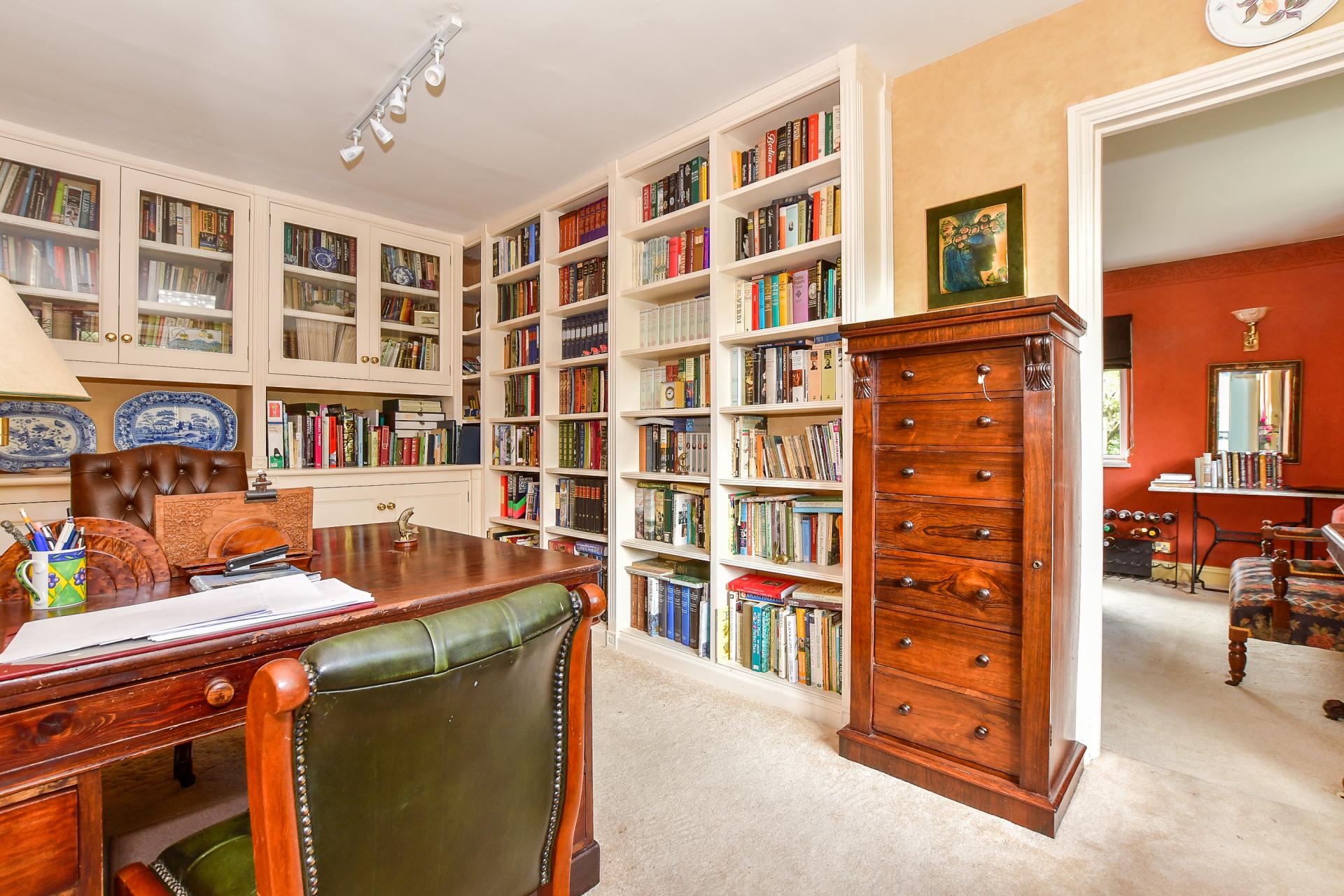 Driving along a leafy country lane you come across the entrance to the property and a driveway that leads to a spacious parking area bordered by a good sized front garden, the double garage, the main front door and the front door to the annex. The main front door opens into the hallway with the primary staircase to the first floor and provides access to the reception rooms on the ground floor including the light filled, triple aspect living room with wood flooring and French doors to the rear garden. There is a very useful study with two walls of fitted cabinets and shelving and, as it is just inside the front door, it is well positioned for business visitors who do not need to venture into the private part of the home.
