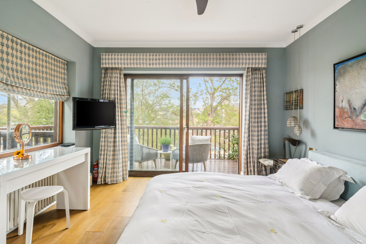 Located on the enchanting Eel Pie Island in Twickenham, this rustic six-bedroom, six-bathroom detached home exudes charm and character, perfectly complementing its picturesque riverside setting. The property blends beautifully with its natural surroundings, featuring warm wooden accents and a cosy, inviting atmosphere that makes it feel like a true retreat.