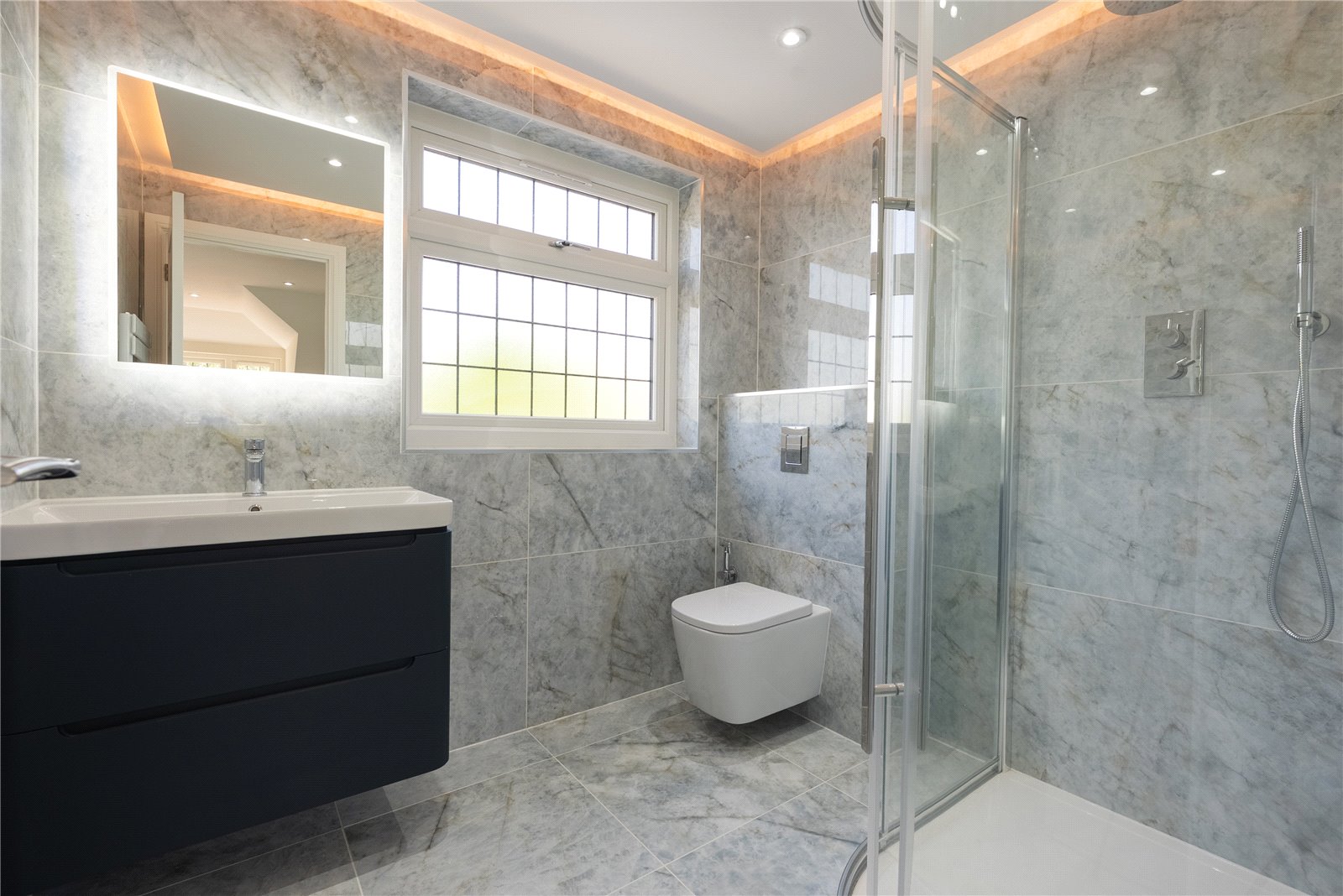 Every en-suite bathroom has been appointed with contemporary fixtures and fine materials, delivering a spa-like ambience throughout. A guest cloakroom further enhances the practicality of the home.